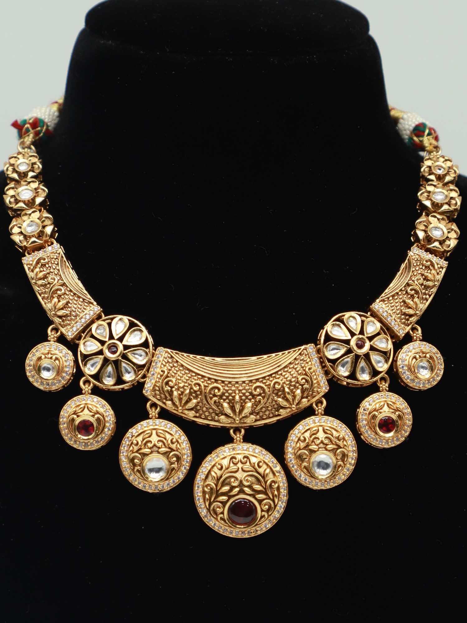 NECKLACE : 17.7 INCH LENGTH X 9.2 INCH WIDTH EARRINGS : 2.5 INCH HEIGHT X 1.5 INCH WIDTH Mangtika - 5 Inch Length