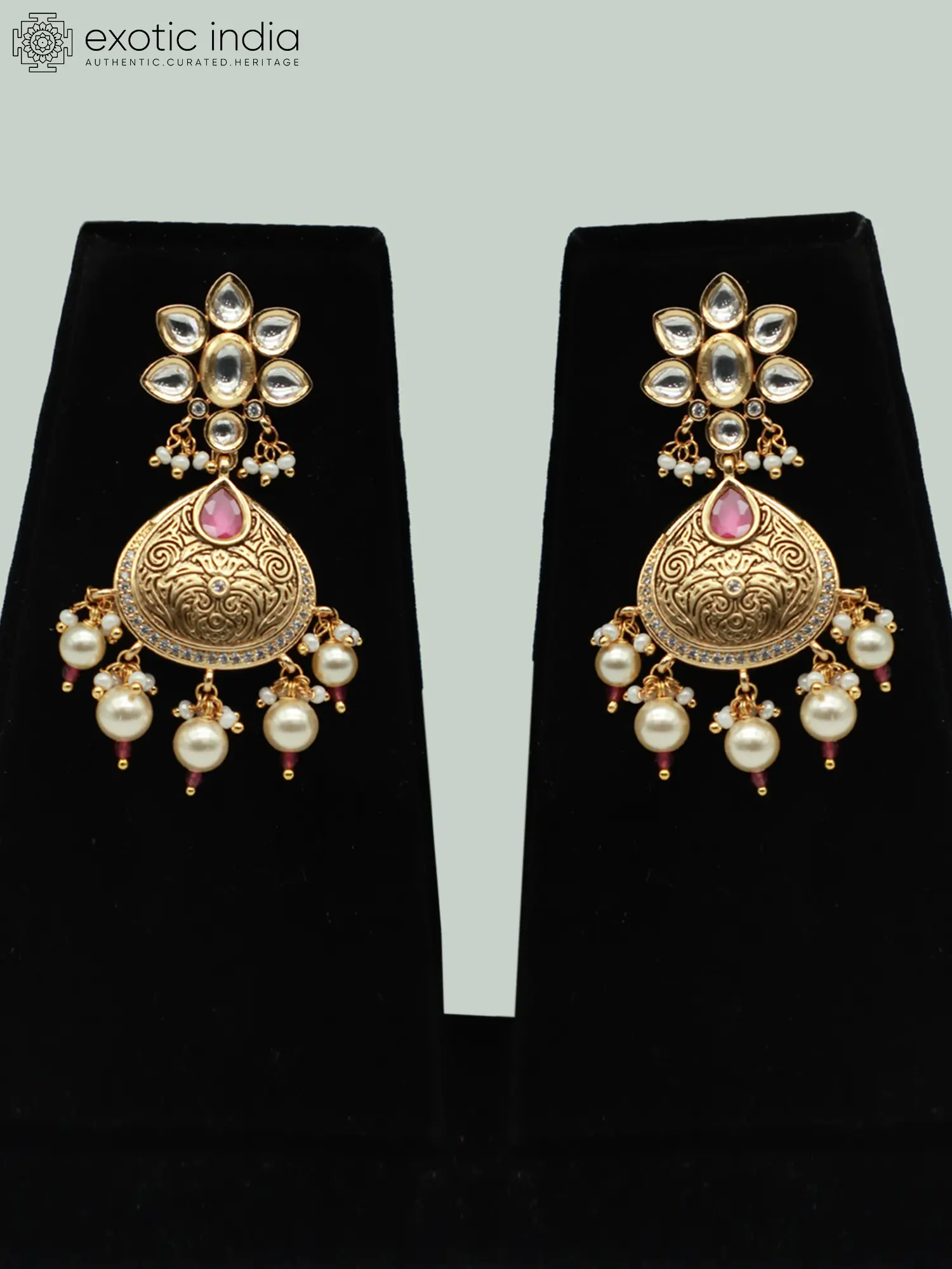 Premium Quality Kundan Stone Necklace Set With Beautiful Carving And Earrings