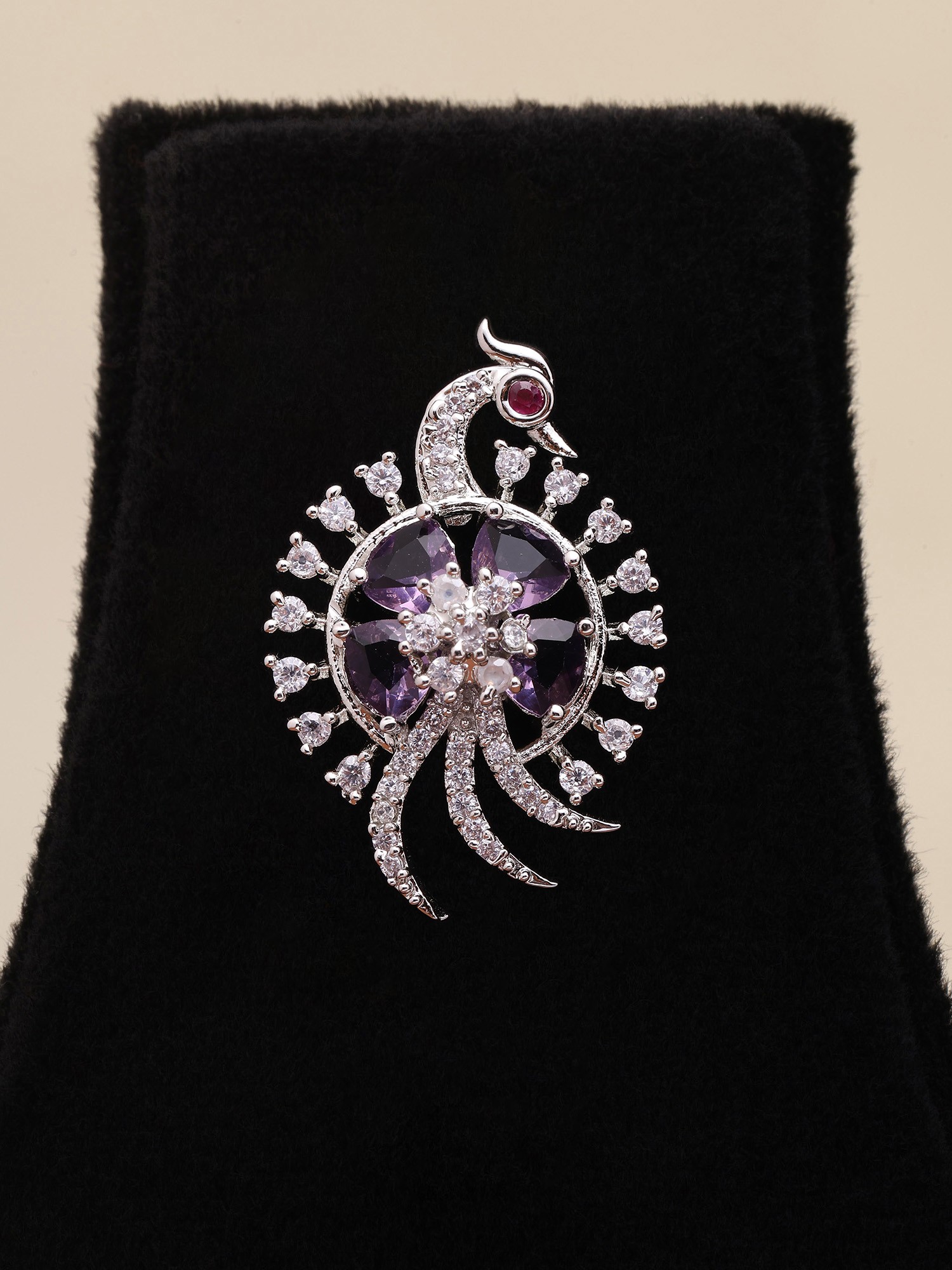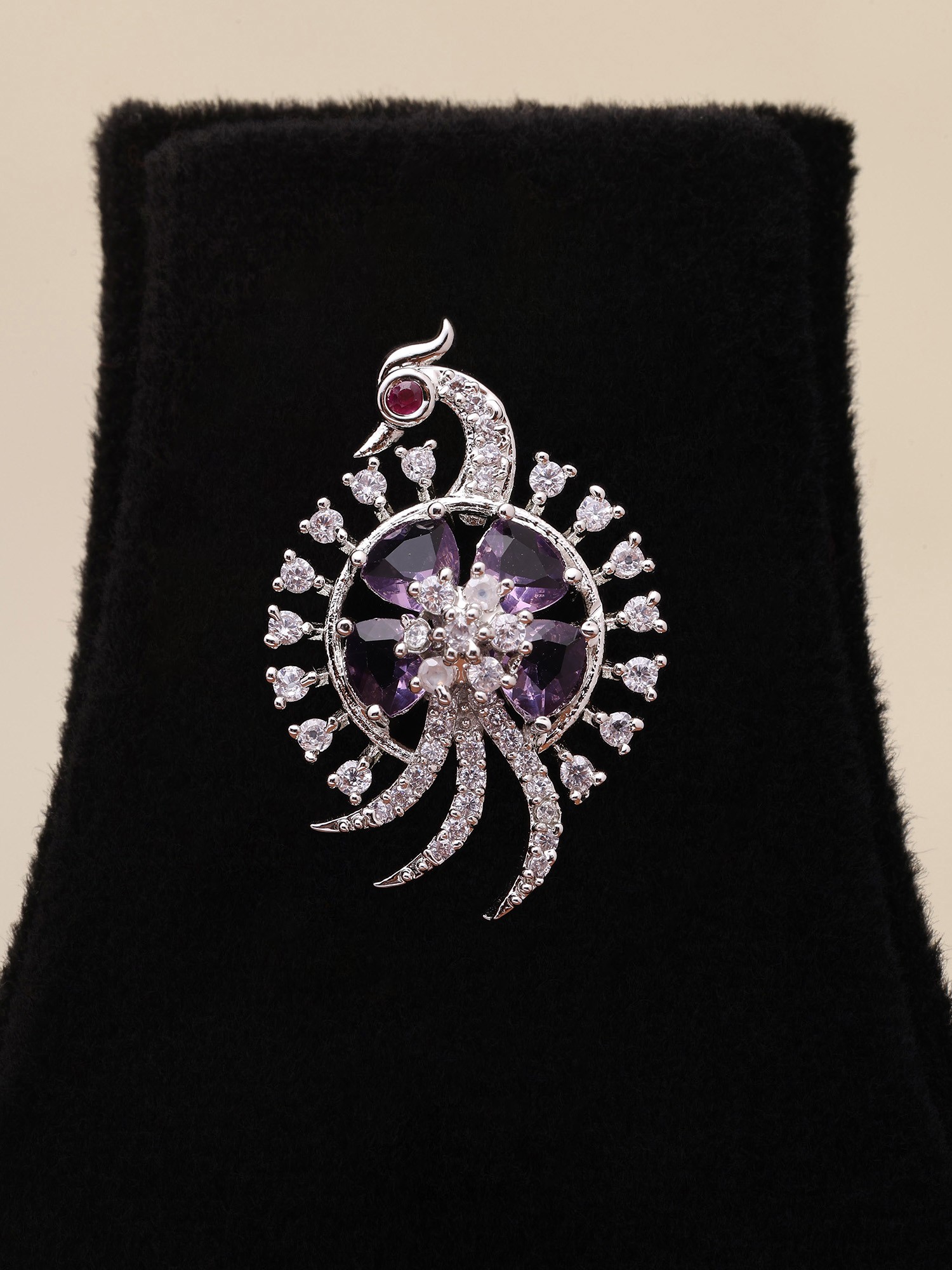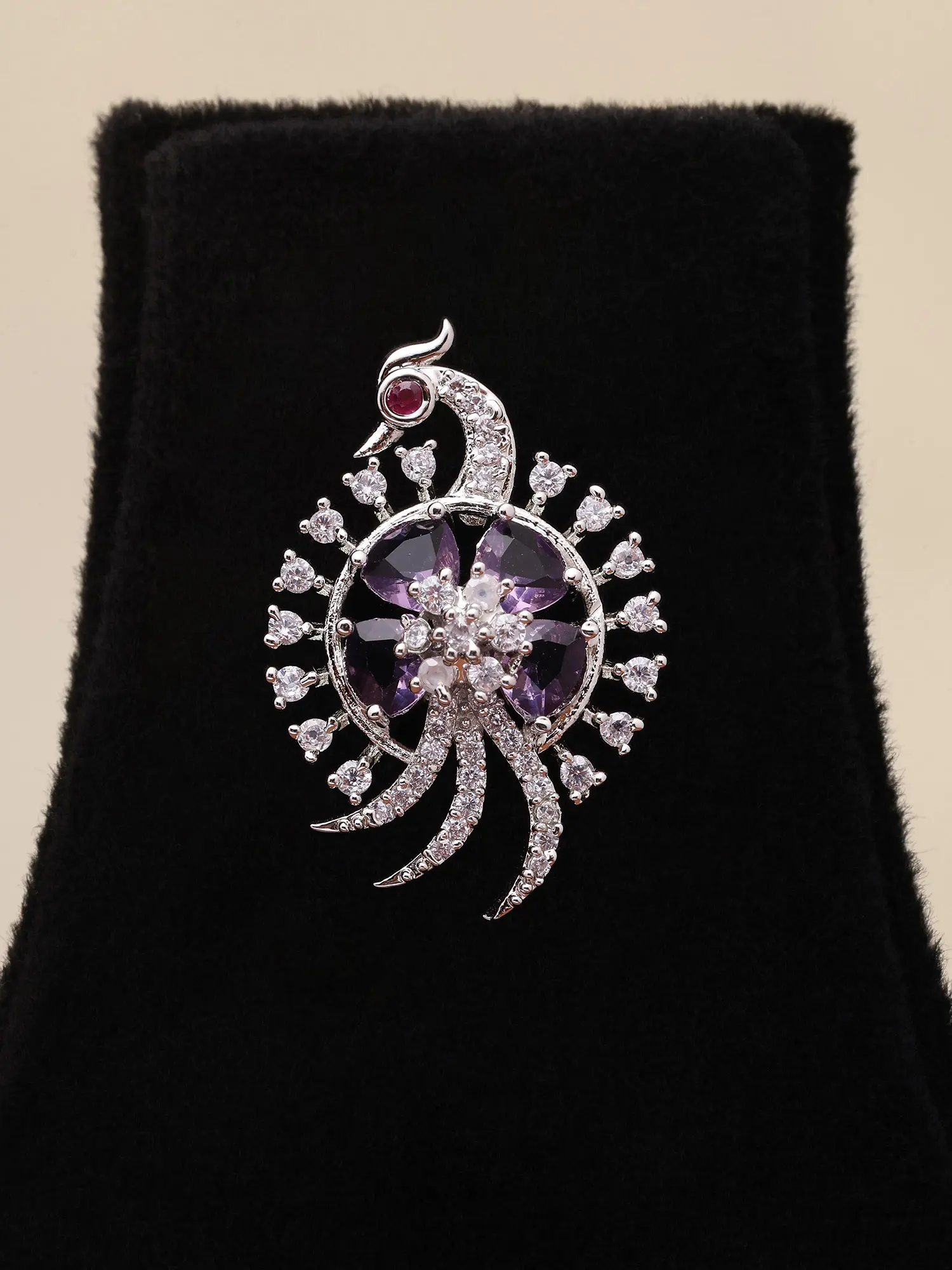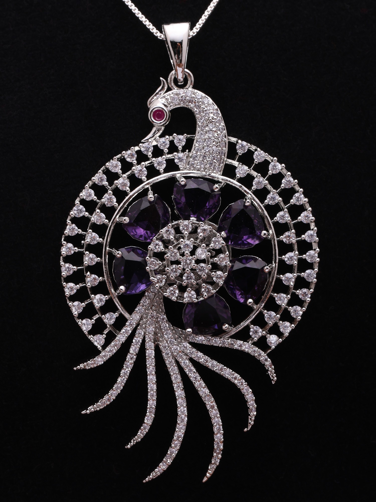 Attractive Kundan Studded Necklace Set With Peacock Pendant And Earrings
