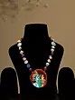 Meticulously handcrafted from fine brass, this piece showcases the dedication of skilled artisans. The central pendant is a canvas for breathtaking miniature art, brought to life with vibrant, hand-painted details. Each bead adorning the necklace is carefully selected and strung, creating a harmonious cascade of color and texture that speaks to artisanal excellence.