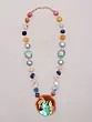 The centerpiece, rendered in warm brass, features a captivating depiction, intricately detailed and radiating with soulful expression. Surrounding this focal point, a carefully curated string of multicolor stones adds a dynamic vibrancy, each gem possessing its own unique hue and subtle sheen. This arrangement creates a visually stunning statement, designed to draw the eye and ignite conversation. The overall length of twelve inches ensures a graceful drape, perfect for complementing various necklines.