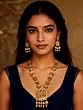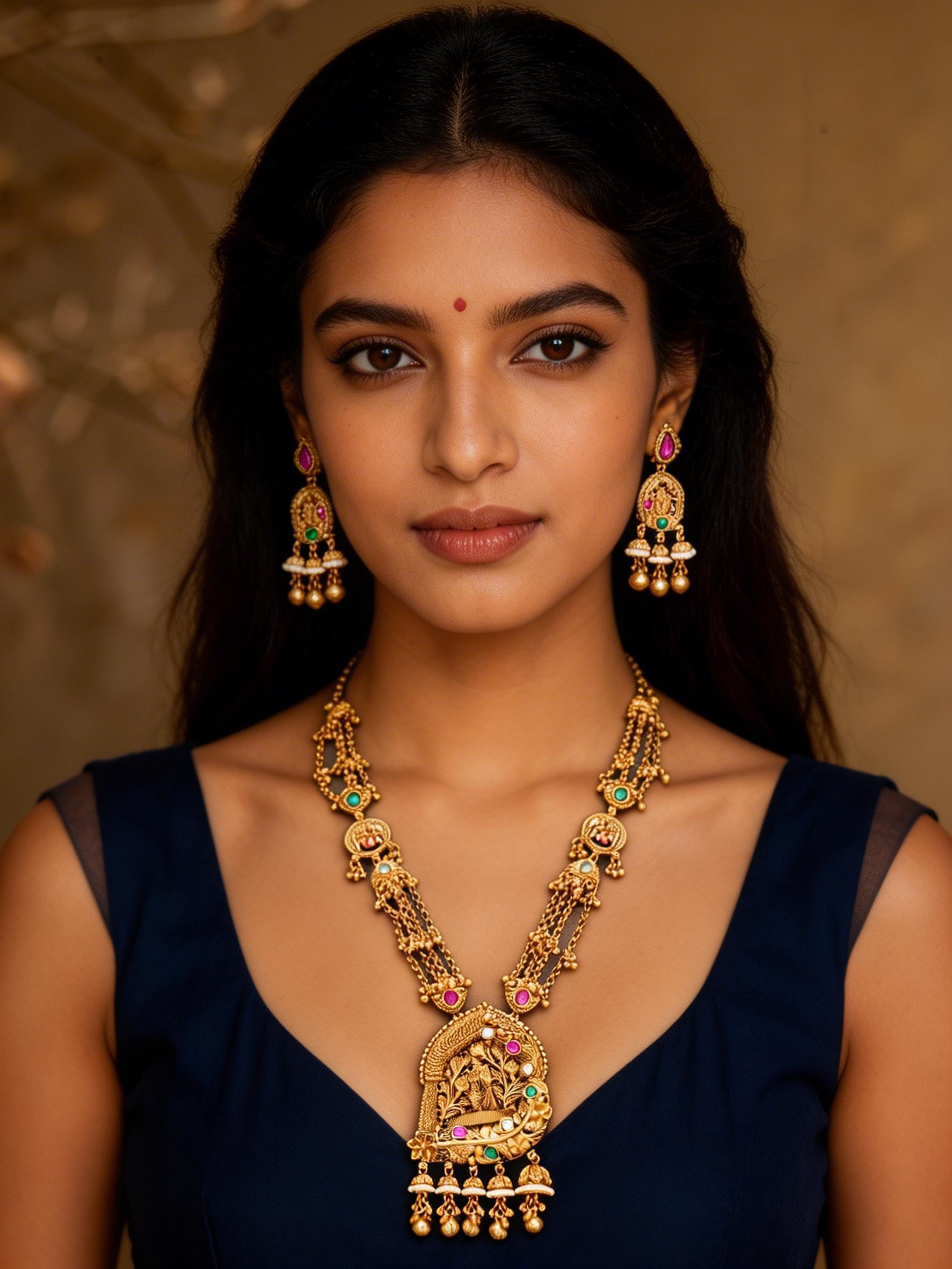 Adorn yourself with a testament to divine artistry, a piece that whispers tales of devotion and eternal love. This magnificent ensemble, featuring a temple-inspired Haram necklace and meticulously crafted earrings, is designed to capture the essence of sacred narratives, making you the radiant center of any occasion. It is more than mere adornment; it is an heirloom that connects you to centuries of spiritual heritage.