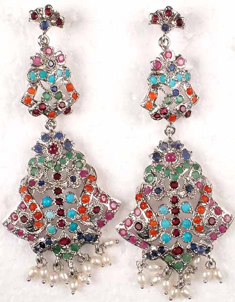 These exquisite earrings are skillfully crafted from sterling silver, providing a lustrous backdrop for the constellation of colorful stones. Each stone is carefully selected and expertly set to maximize its brilliance and ensure a secure hold. The intricate design showcases a commitment to quality and an eye for detail. The lightweight feel of sterling silver ensures a comfortable wear, allowing you to showcase this beautiful piece effortlessly.
