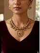 Traditional Jharokha Carved Three Layer Rajwadi Rani Haar Set with Bead Drop