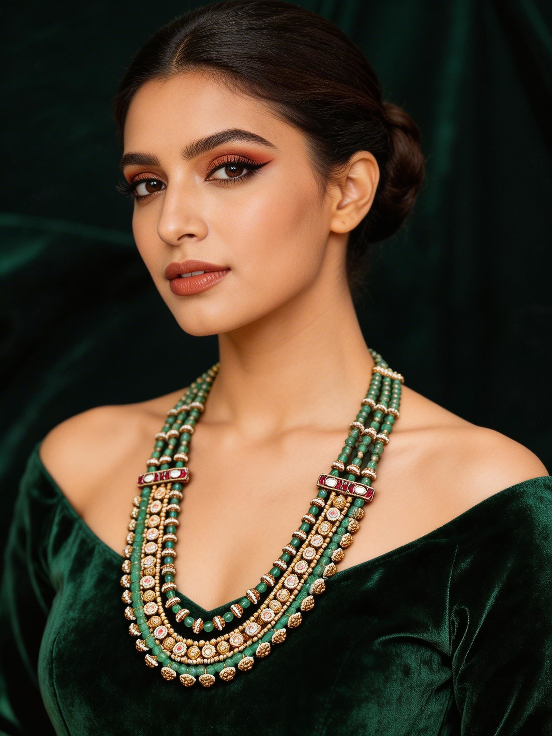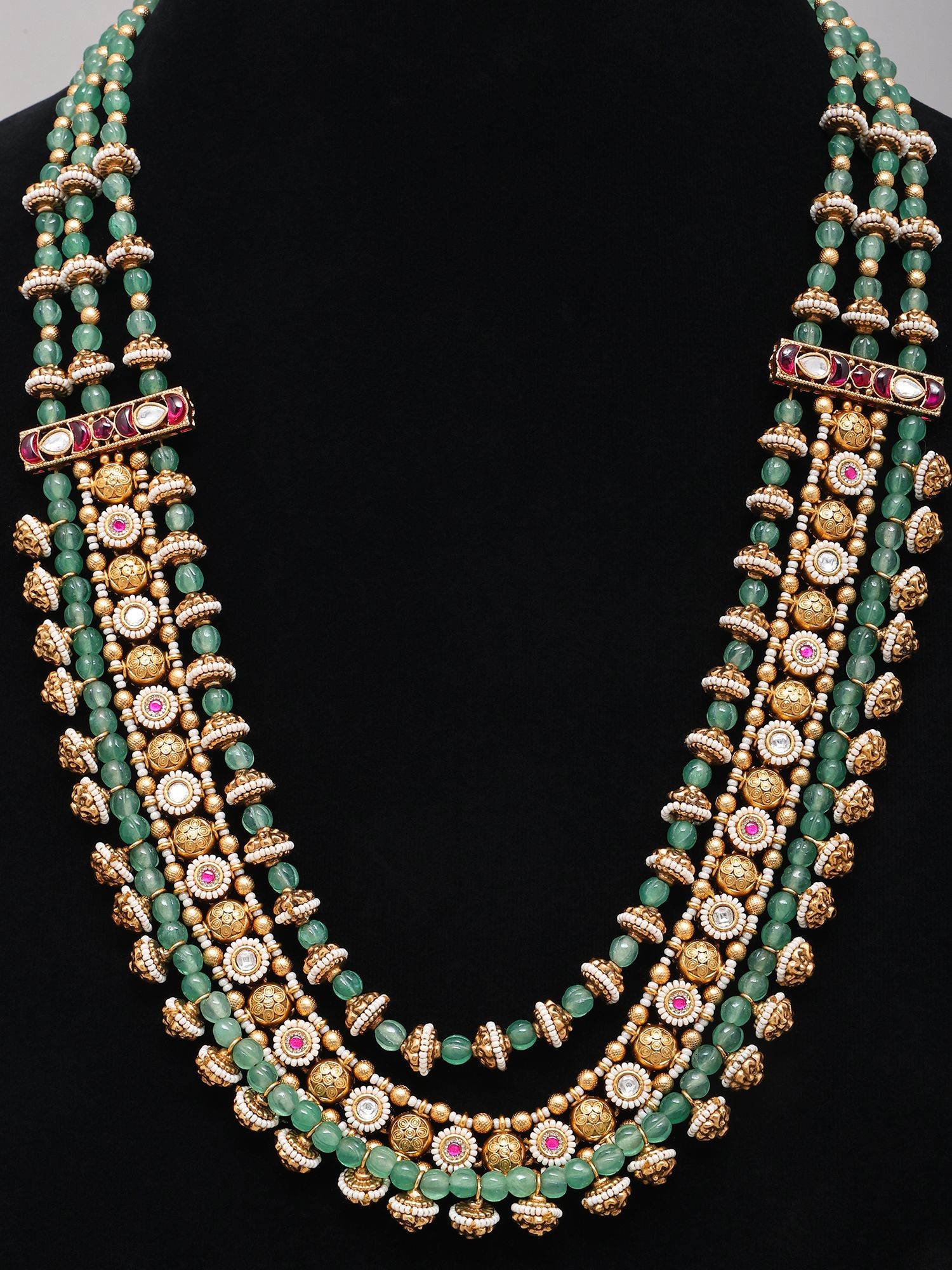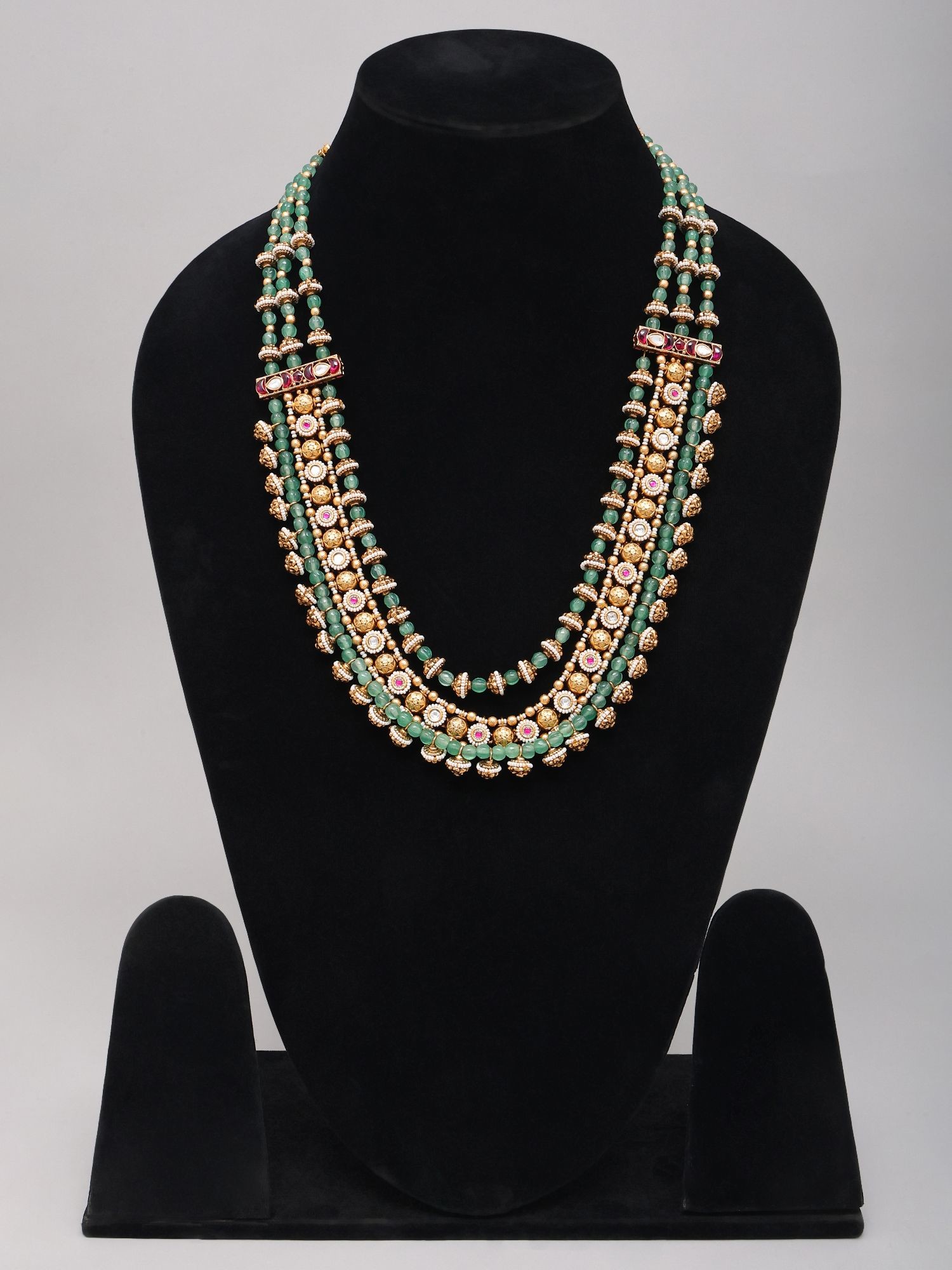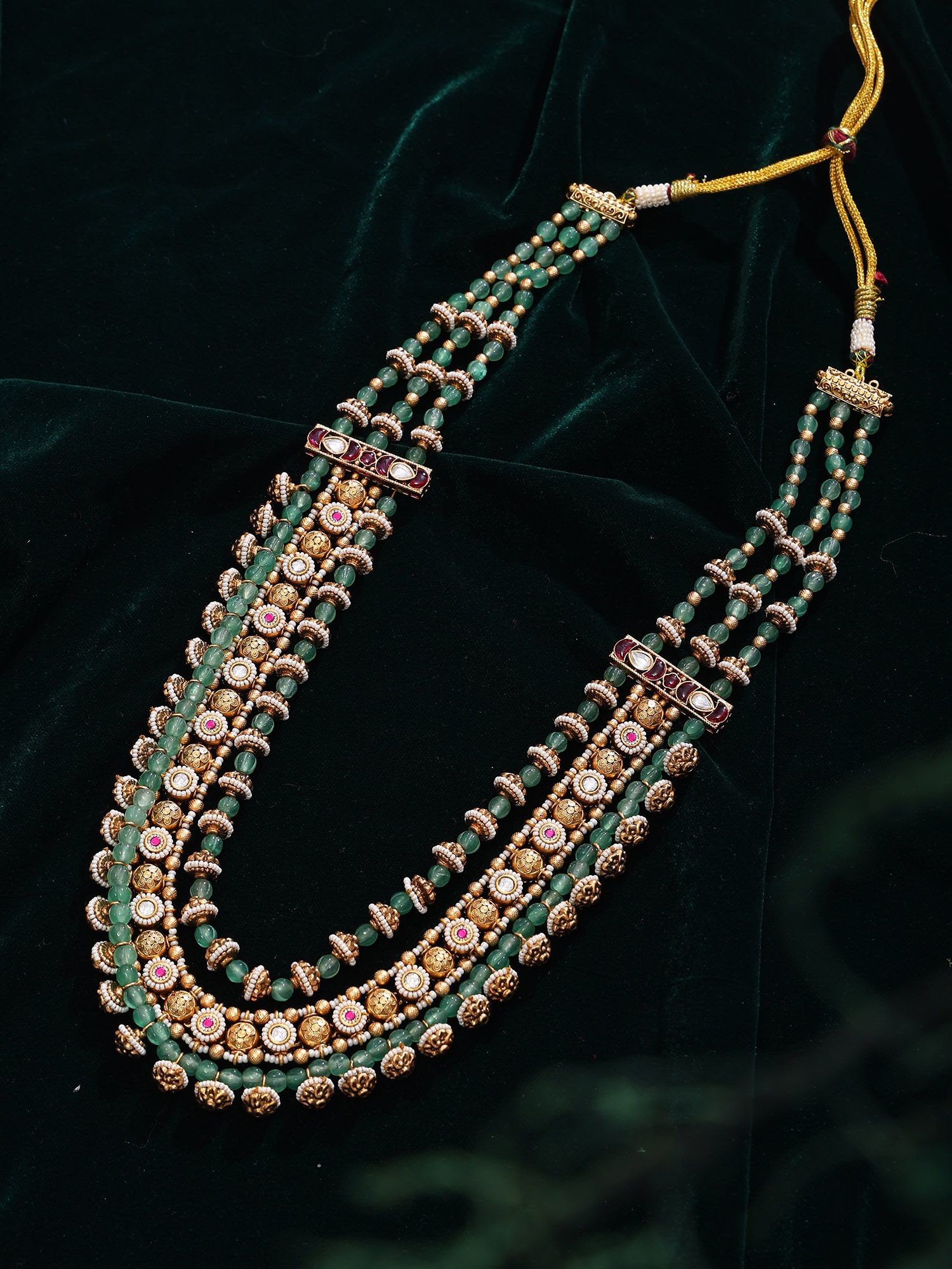Goddess Lakshmi Kundan Necklace and Earring Set | Beaded Multi Strand Design