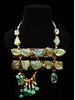 Raw Green Aquamarine Necklace with Dangling Jade and Pearls
