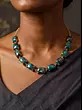 Floral Green and Blue Stone Studded Necklace Set with Earrings