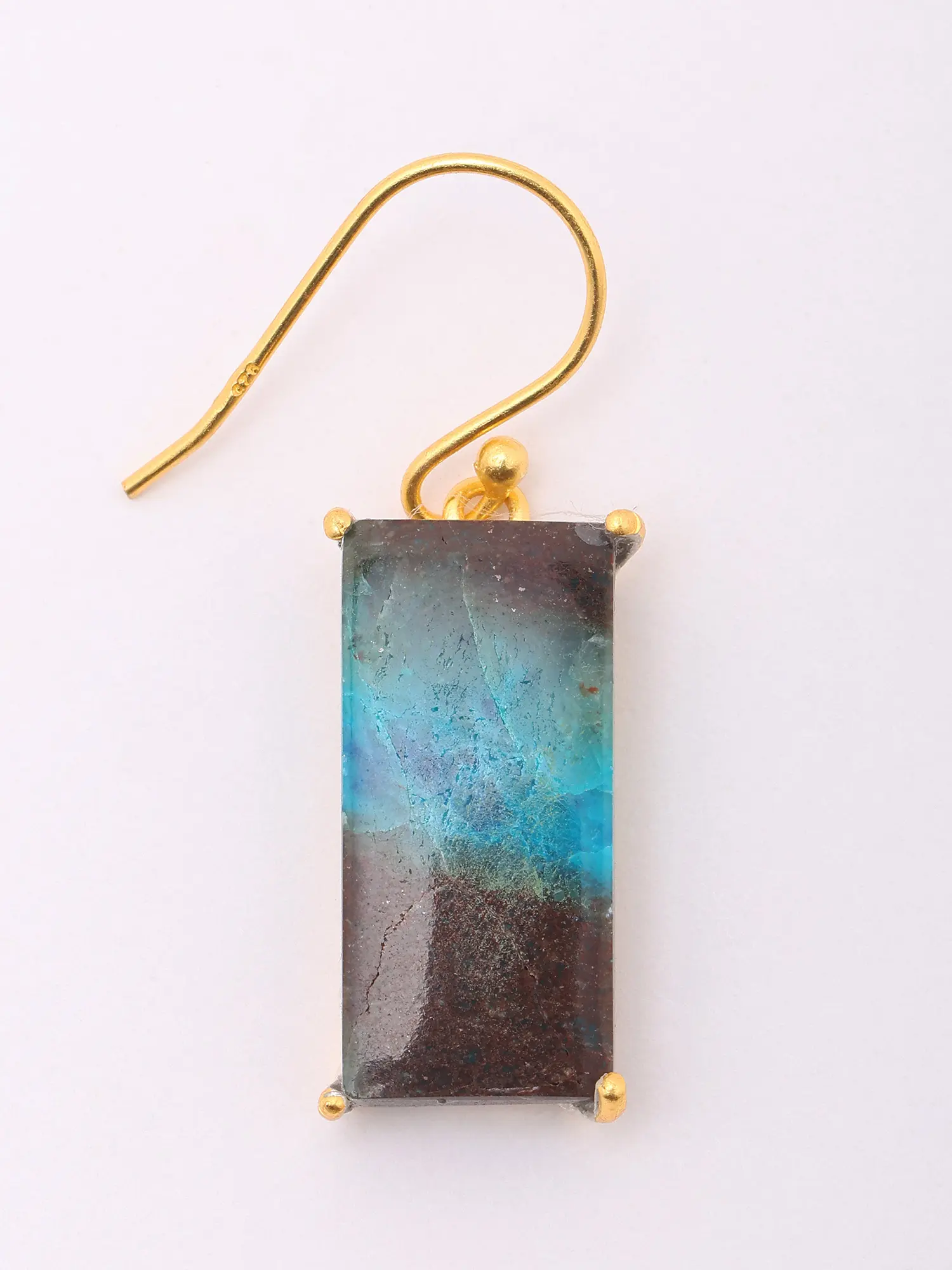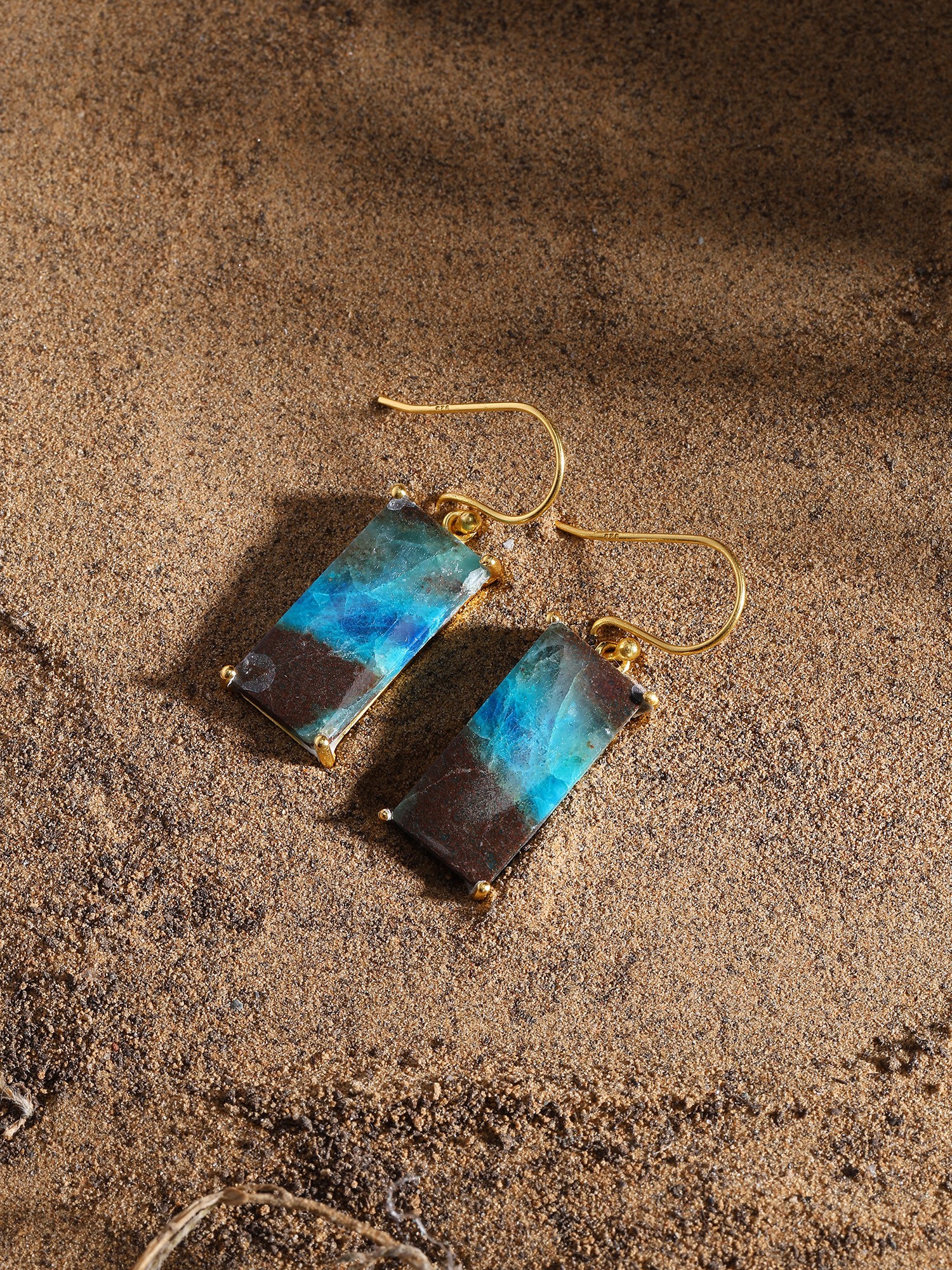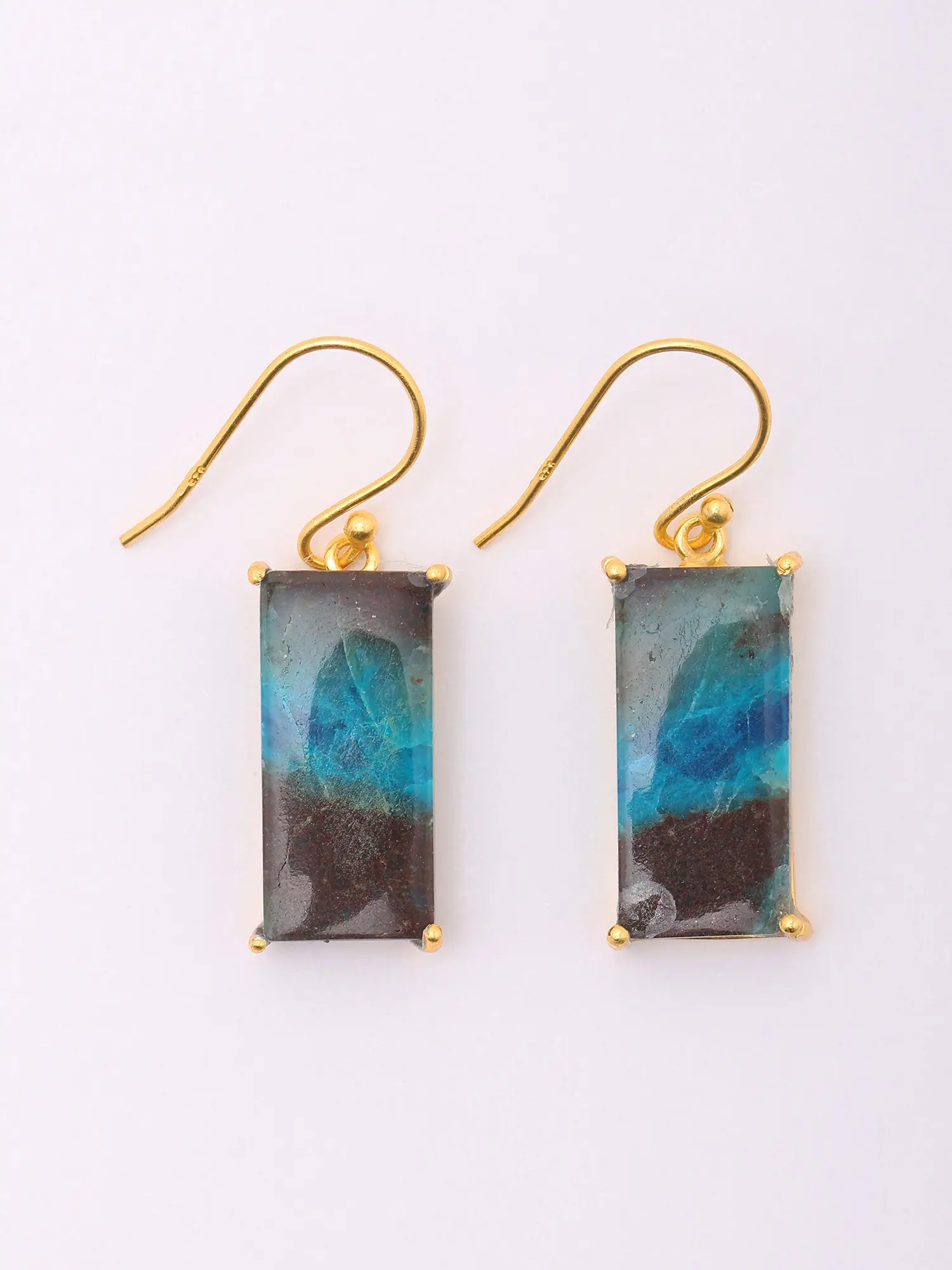 Rectangular Shape Tibetan Copper Turquoise Hook Earrings