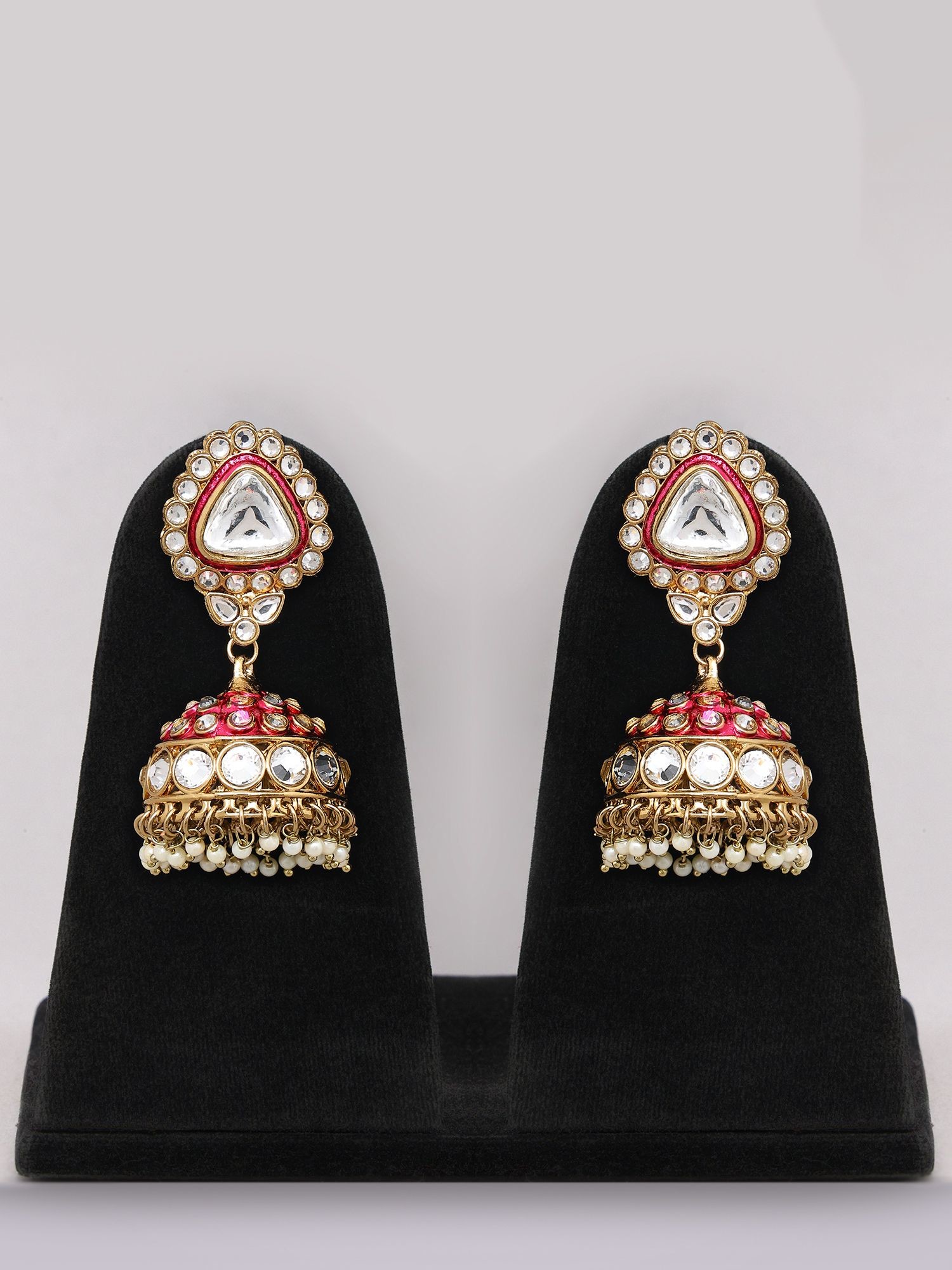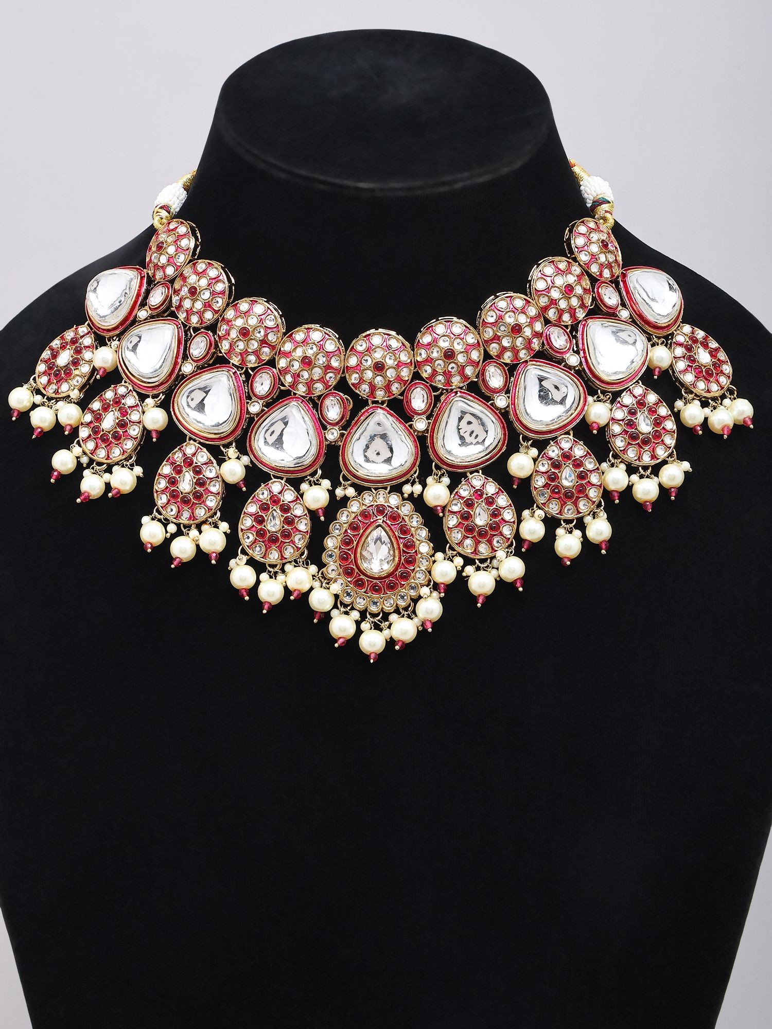 Red Kundan Stone Studded Bridal Wedding Set with Pearl Drop