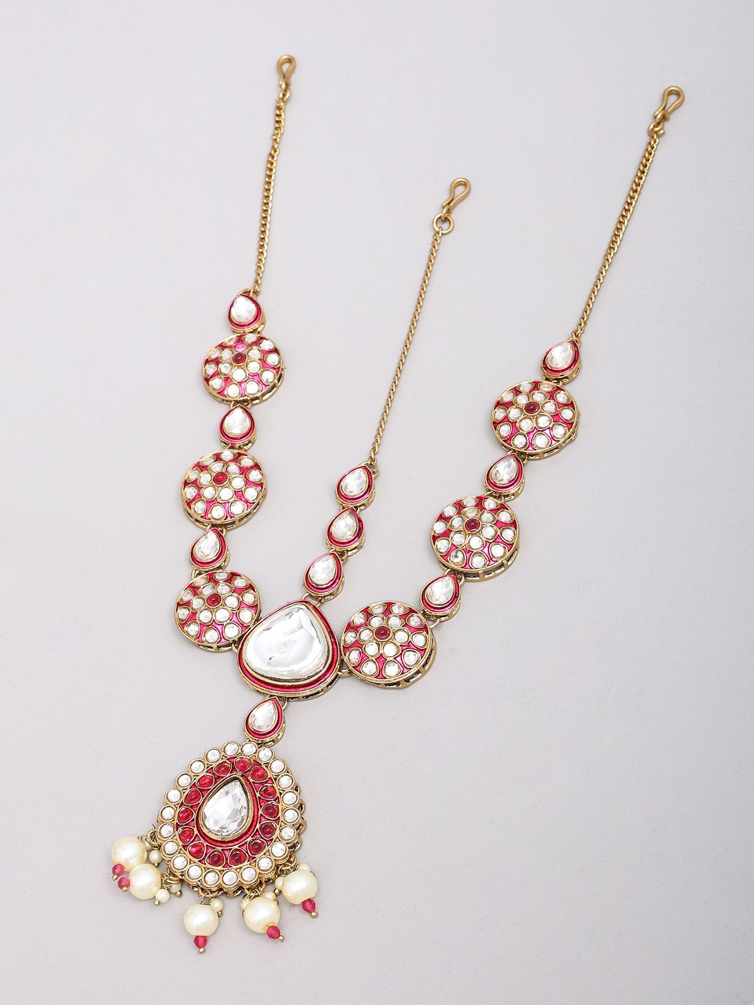 Red Stone Polki Bridal Necklace Set with Earrings & Maang Tikka