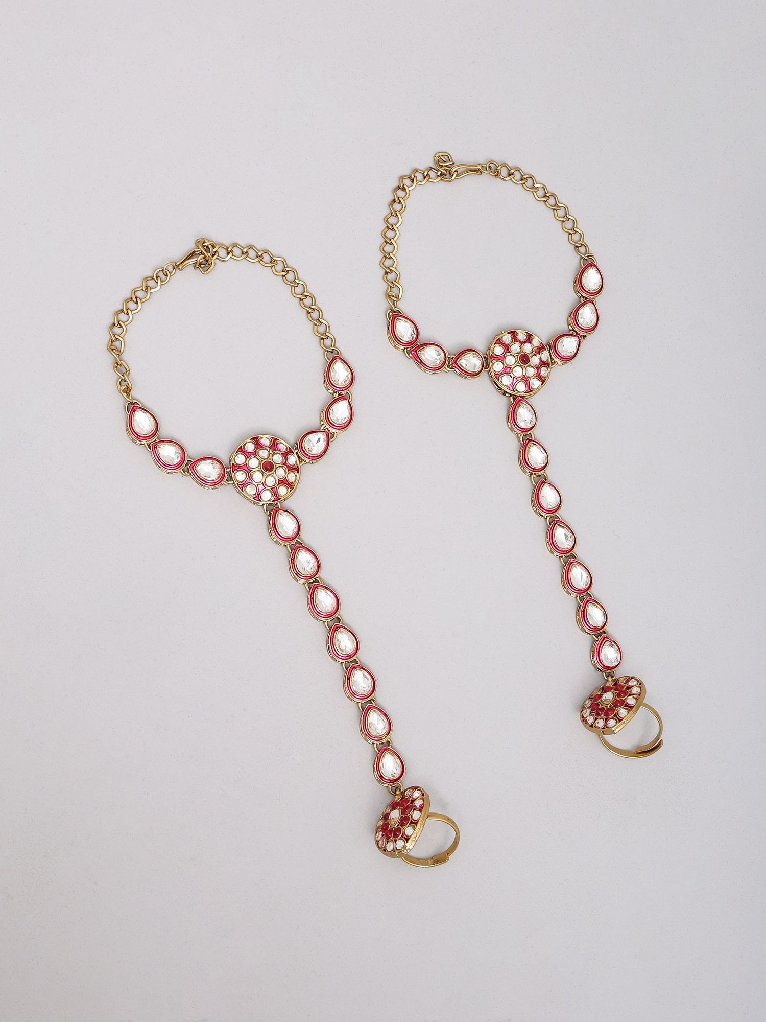 The vibrant red Kundan stones add a pop of color and traditional charm.
