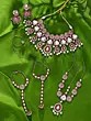 Comprehensive set includes a statement necklace, matching earrings, bracelet, and hand jewelry.