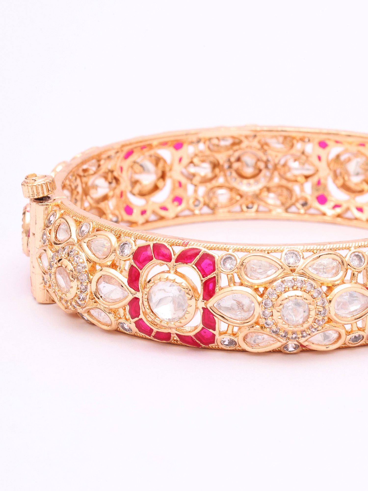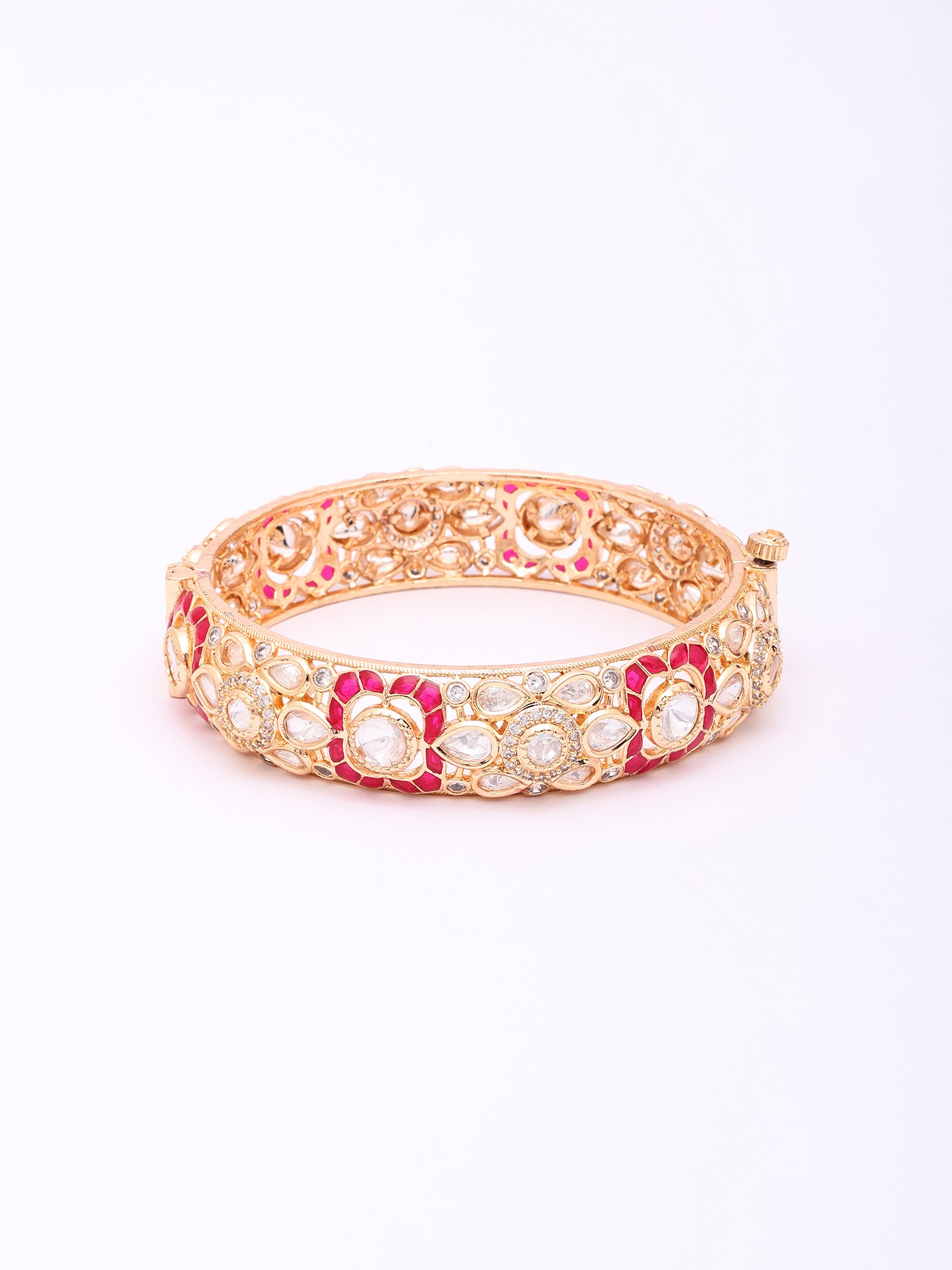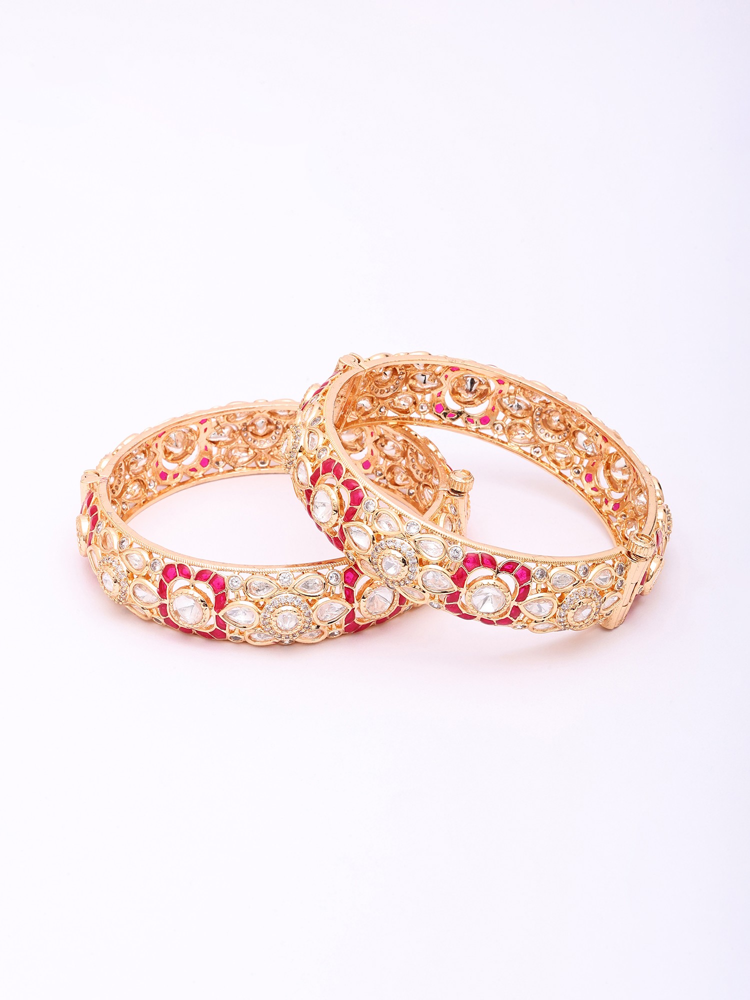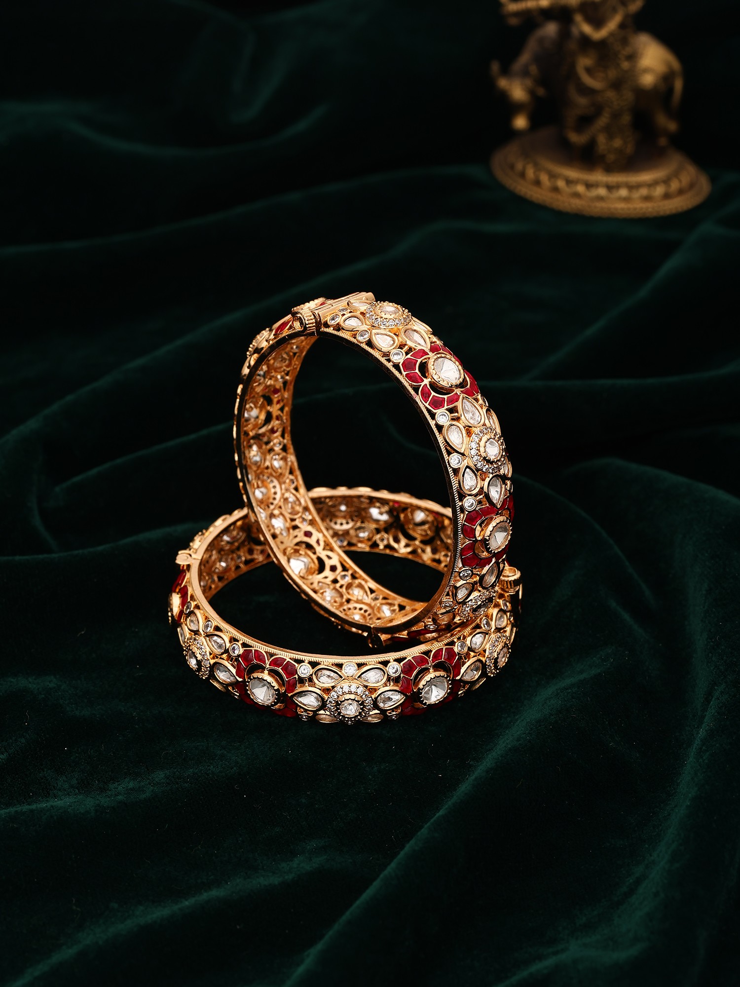 Red Meenakari Polki Studded Openable Kada Bangles (Pair)