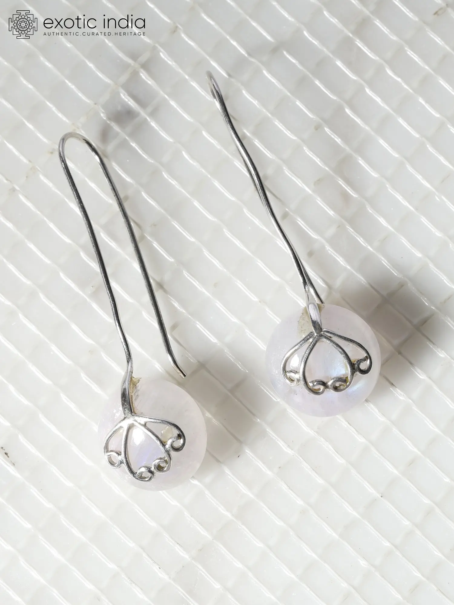 Two snowdrops held by sterling silver, these rose quartz hook earrings are stylishly feminine.