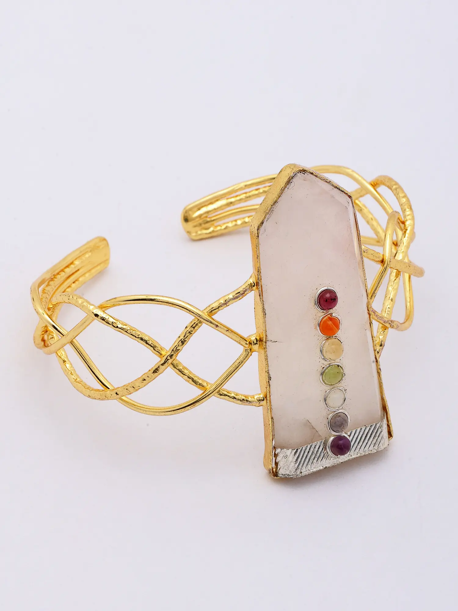 Tibetan Style Stone Studded Bracelet with Lobster Claw Lock