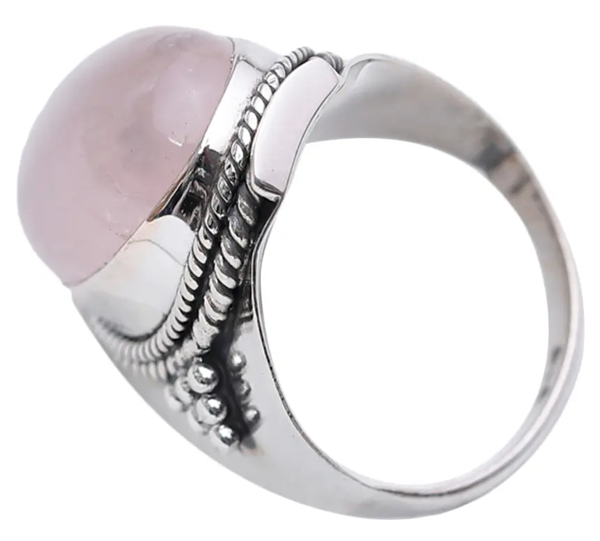 Oval Shape Rose Quartz Pendant with Silver Ganesha