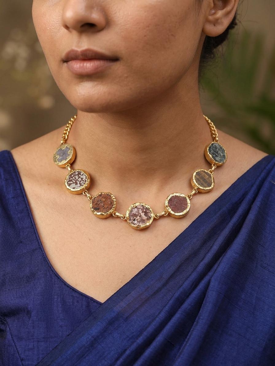 Witness the meticulous craftsmanship that brings these natural wonders to life. Each stone, a unique geological marvel, is carefully selected and encased in lustrous brass, showcasing its individual texture and color. The warm glow of the brass is expertly applied, highlighting the organic contours of the stones and ensuring a comfortable, luxurious feel against your skin.