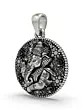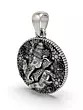 Measuring approximately 0.95 inches in height, this pendant showcases a remarkable level of detail within its captivating round form. The central figure is surrounded by an intricate border of blooming flowers and ornate patterns, each element rendered with precision. This substantial yet elegant piece is designed to be both visually striking and comfortably substantial when worn.