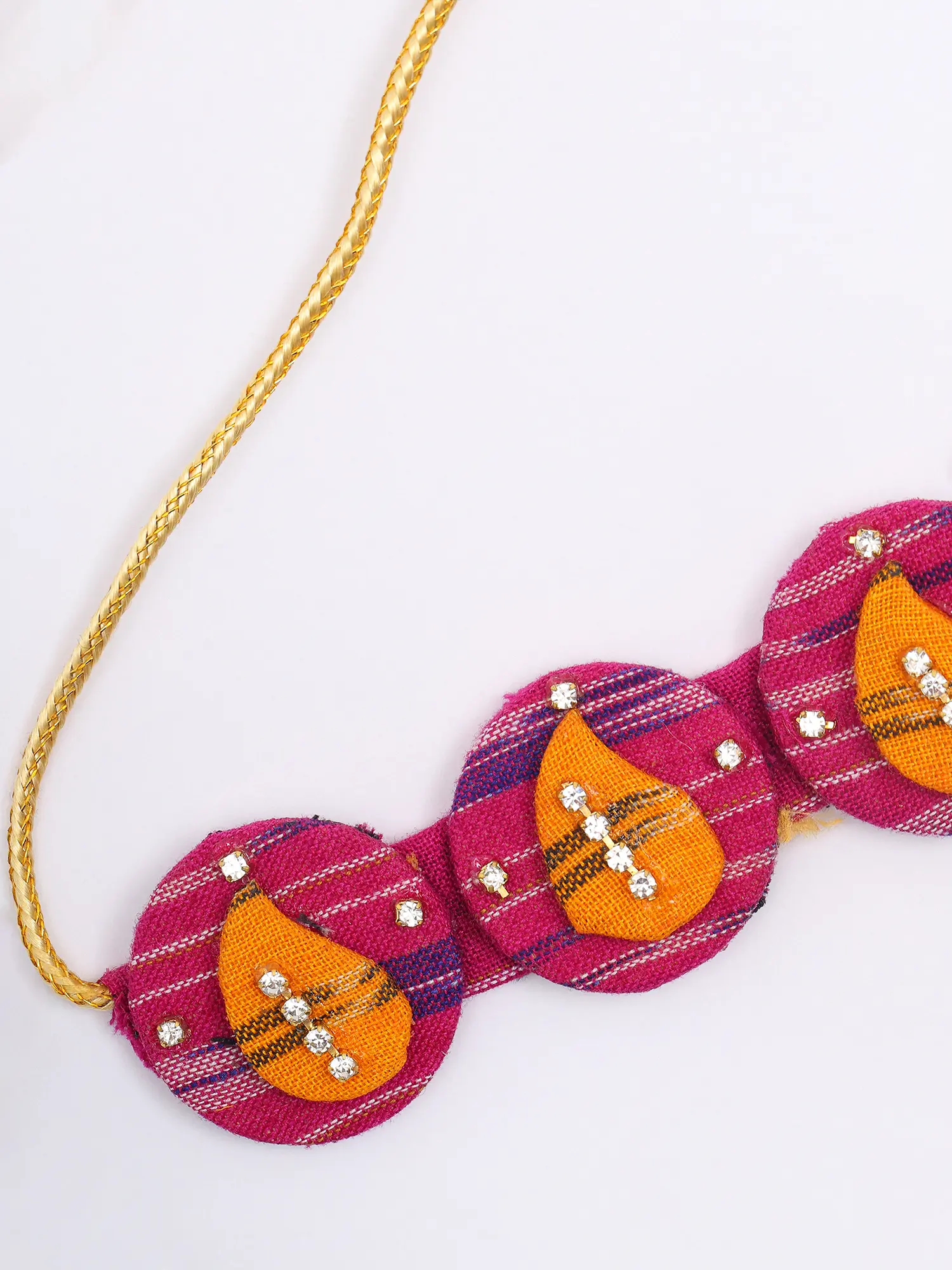 Handloom Sambalpuri Fabric Necklace and Earrings Set with Dangling Tumbled Stone