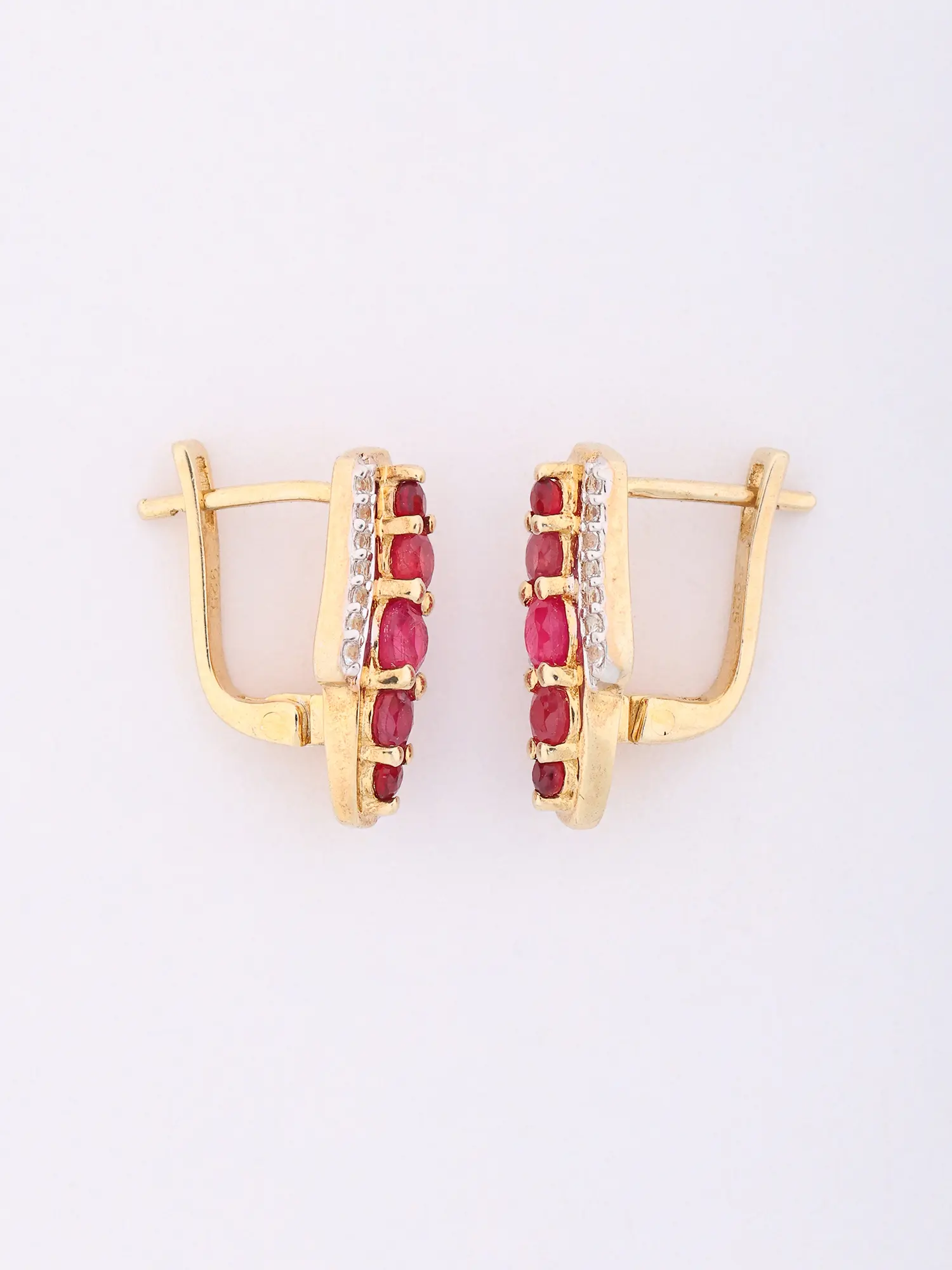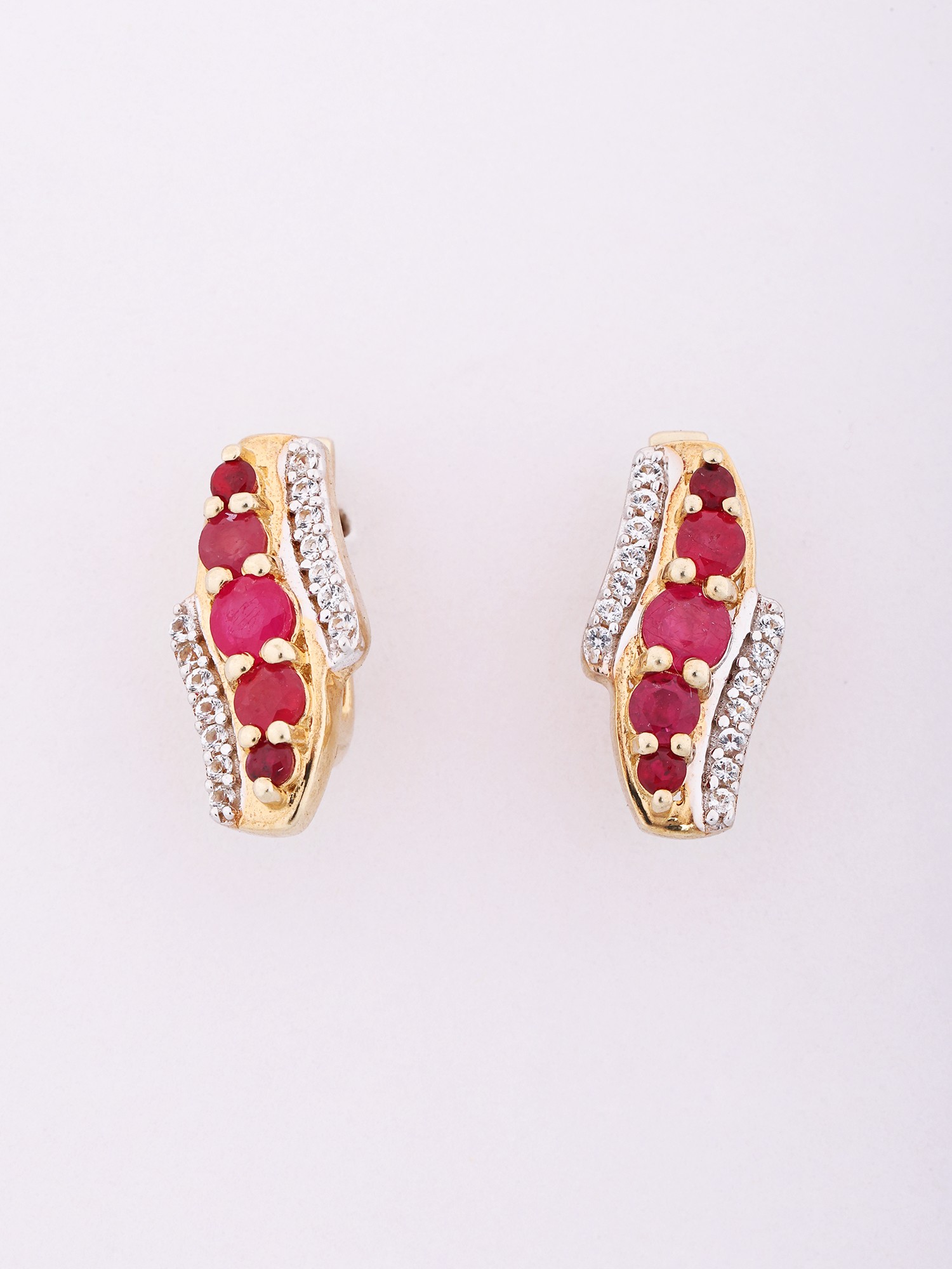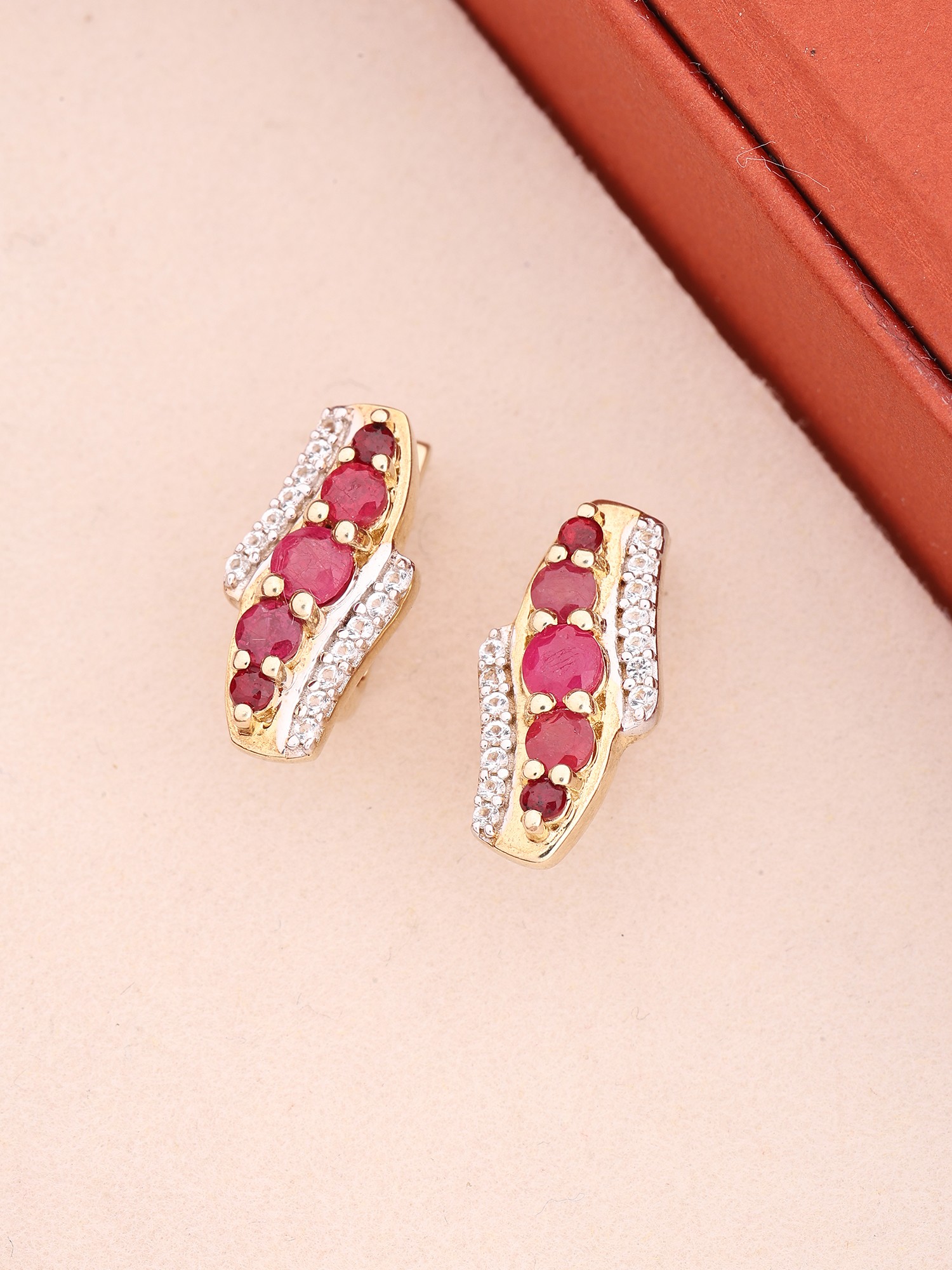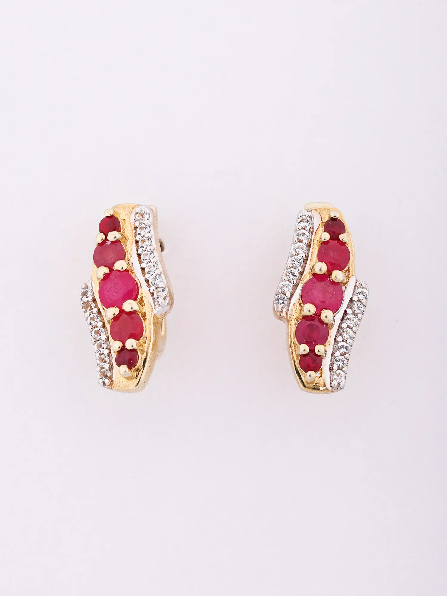 Ruby and Cubic Zirconia Sterling Silver Earring Studs