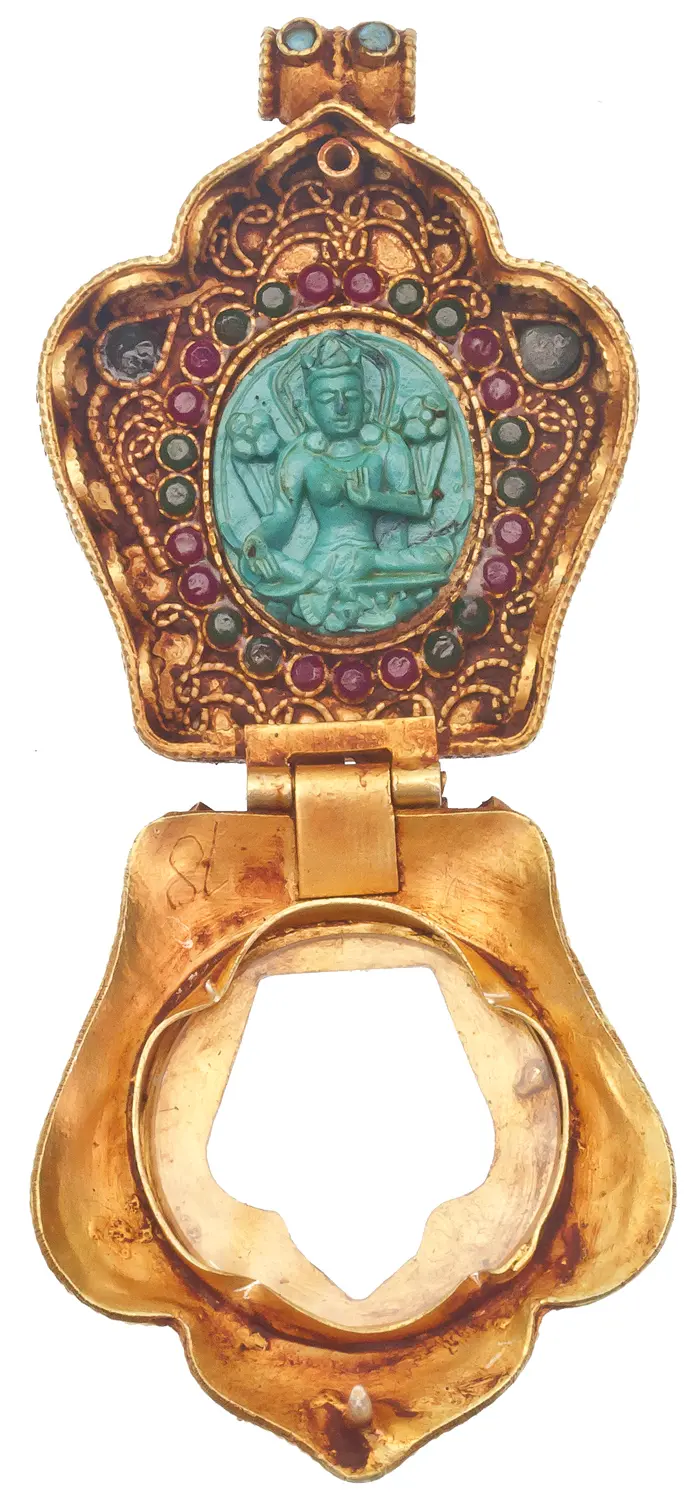 Saviour Goddess Green Tara Gau Box Gold Plated Pendant with Filigree