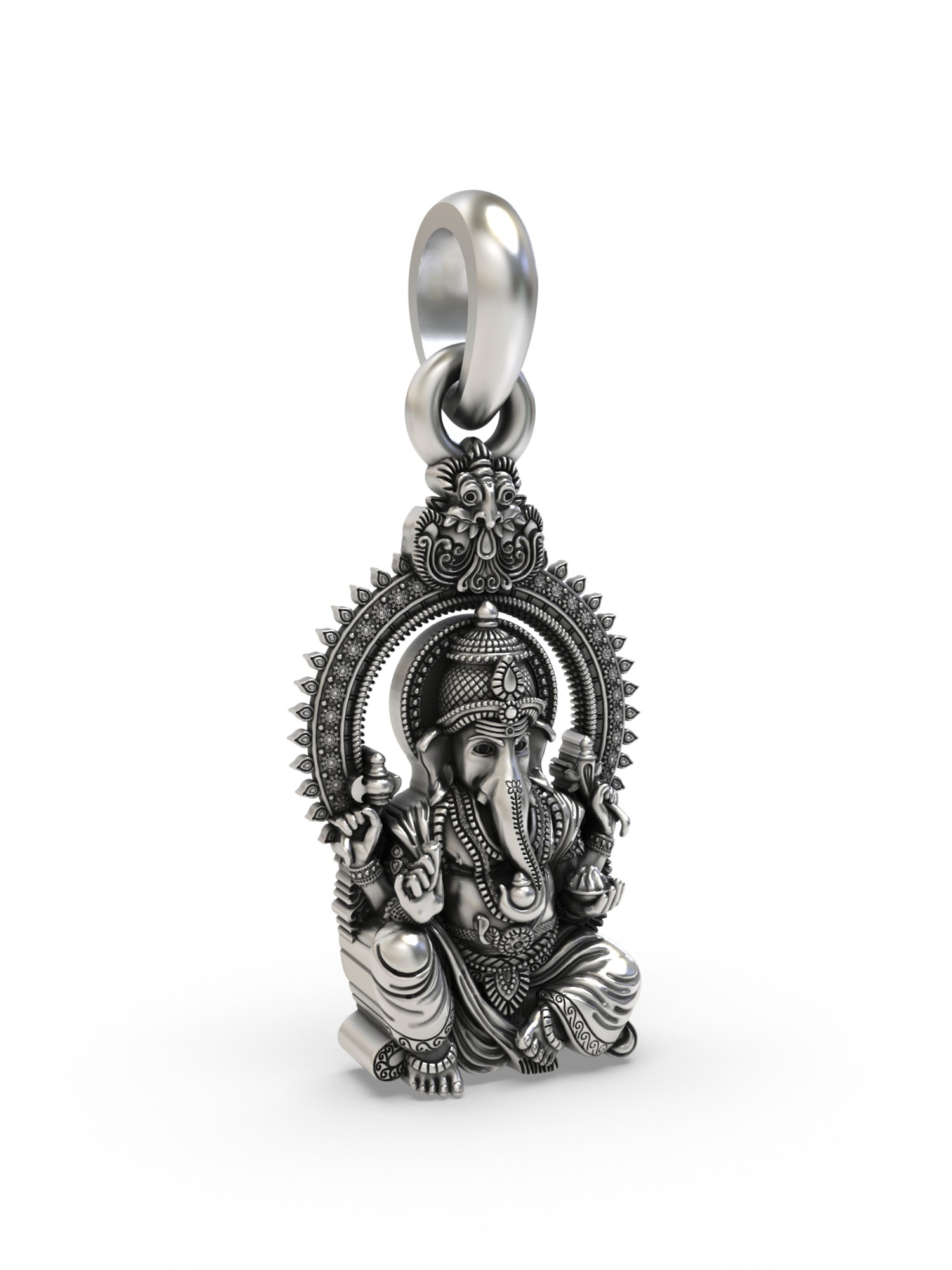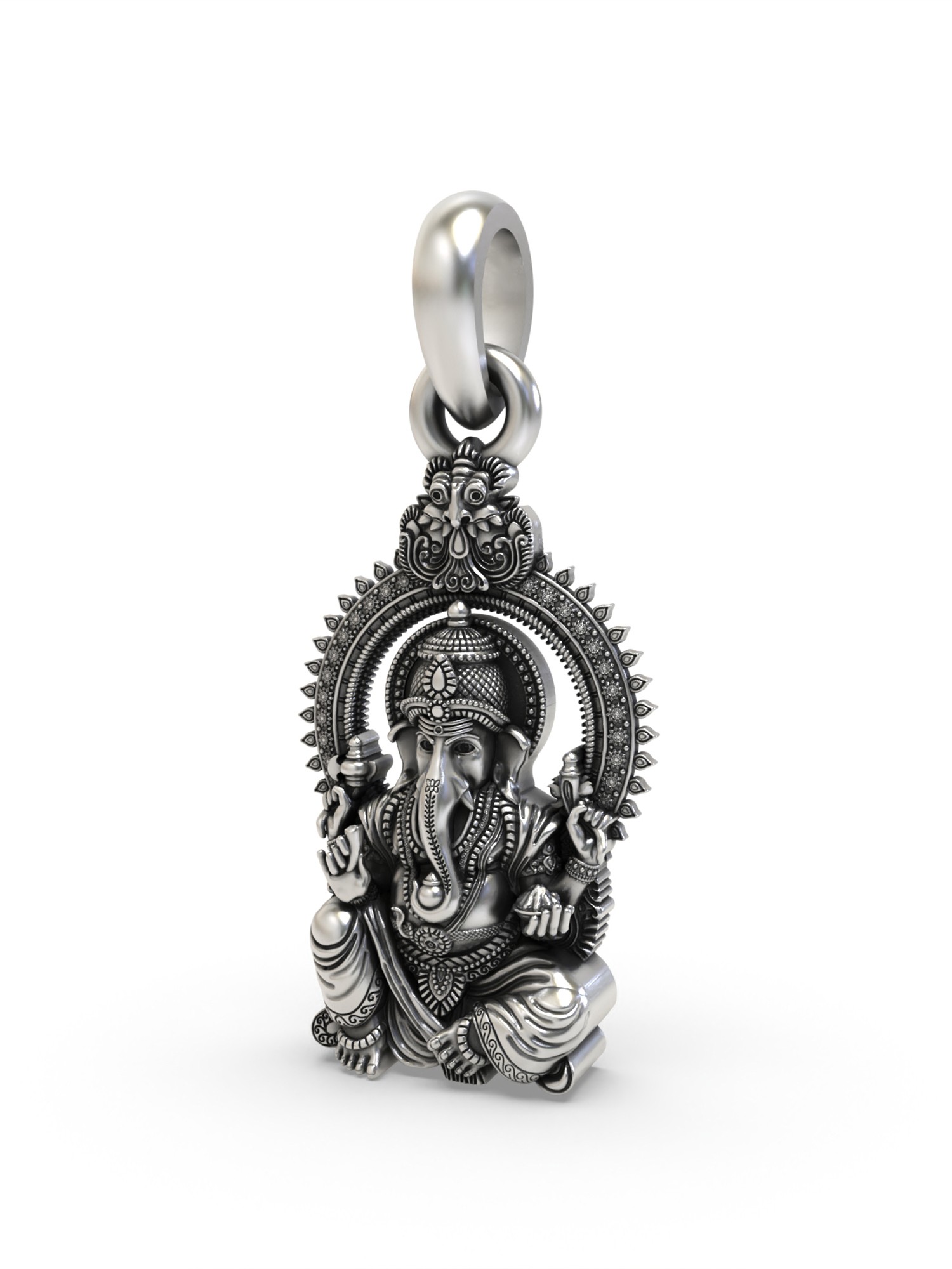 Trimukhi Lord Ganesha Sterling Silver Pendant