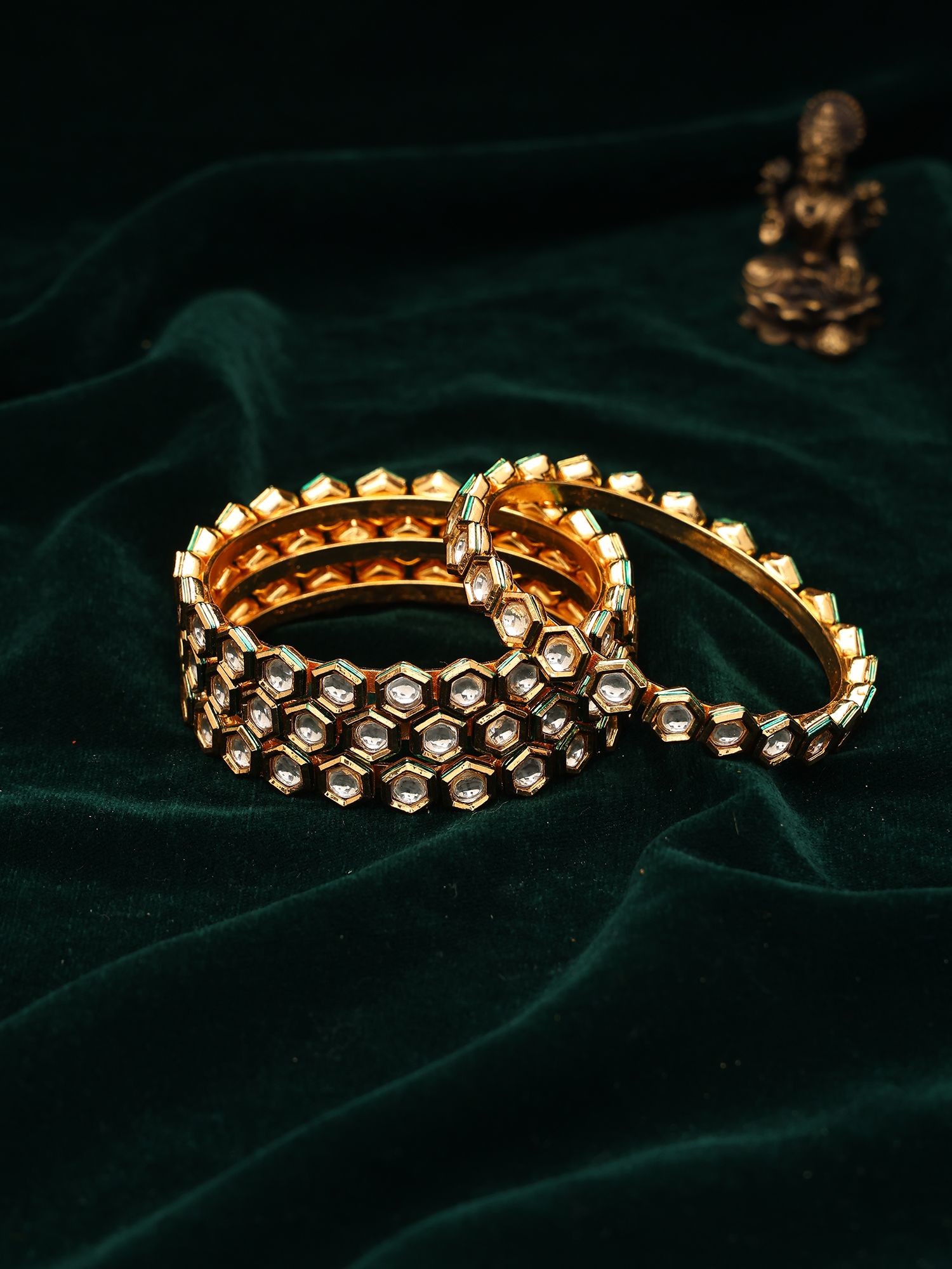 Set of 4 Honeycomb Polki Stone Studded Bangles
