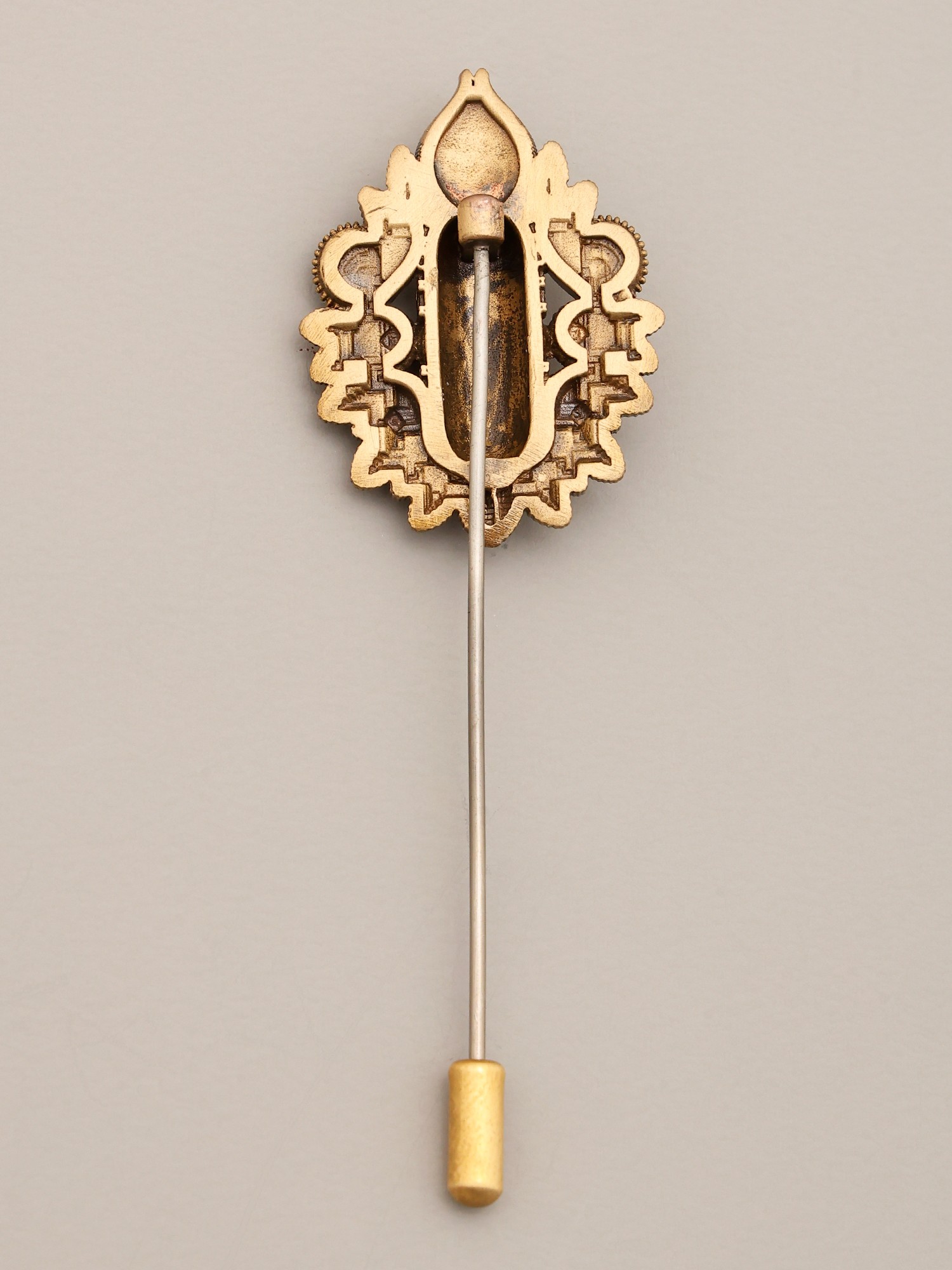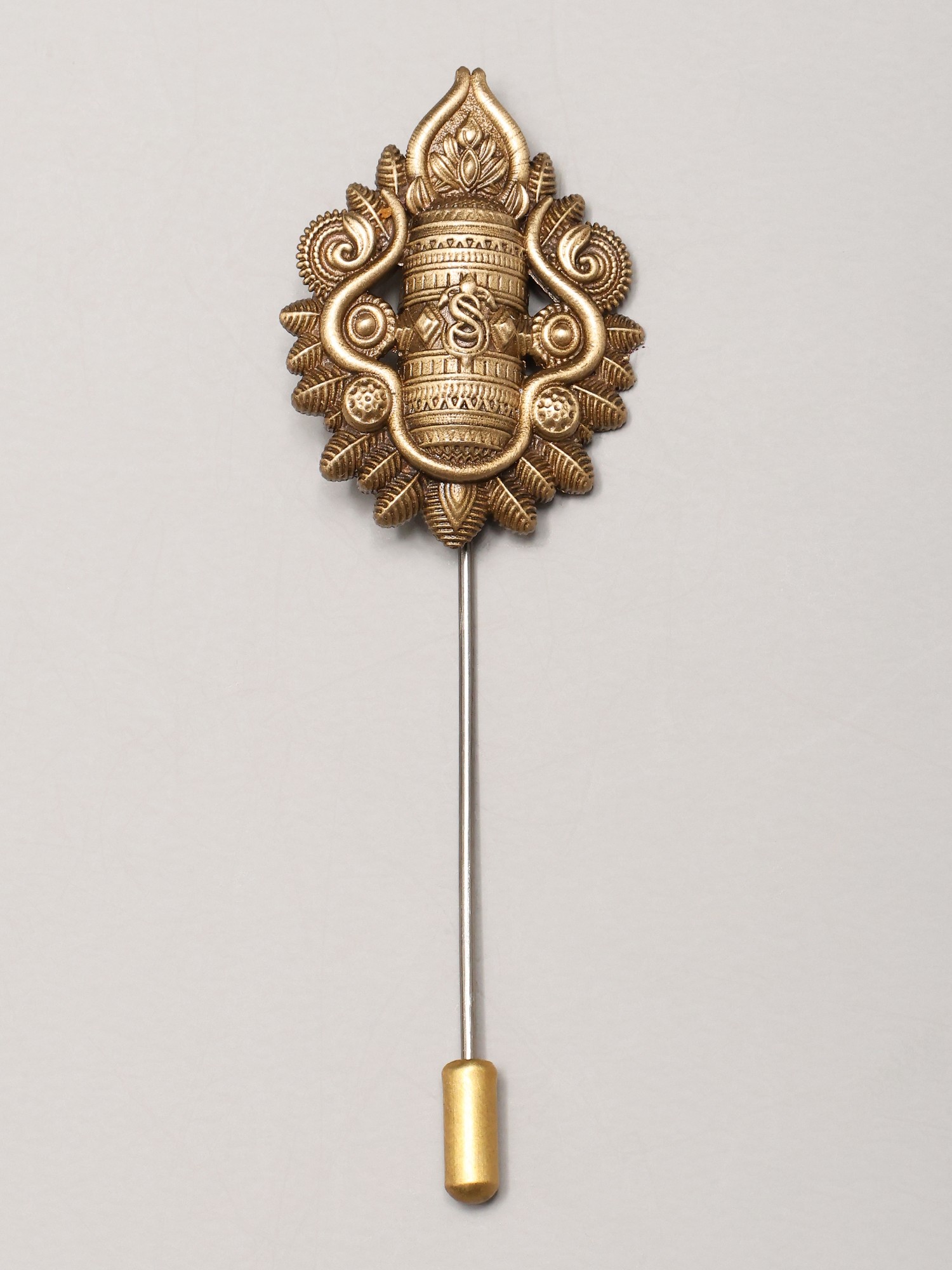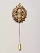 Every detail of this pin has been carefully considered, from the intricate carvings on the central figure to the gracefully swirling embellishments that surround it. The textured surface adds depth and dimension, inviting the eye to explore the subtle nuances of the design. The pin is sturdy and well-made, crafted from high-quality brass to ensure durability and lasting beauty. The pin back is designed for secure attachment, preventing the pin from accidentally detaching, so you can wear it with confidence, knowing it will stay safely in place. The overall design exudes a sense of reverence and sophistication, making it a truly special and meaningful accessory.