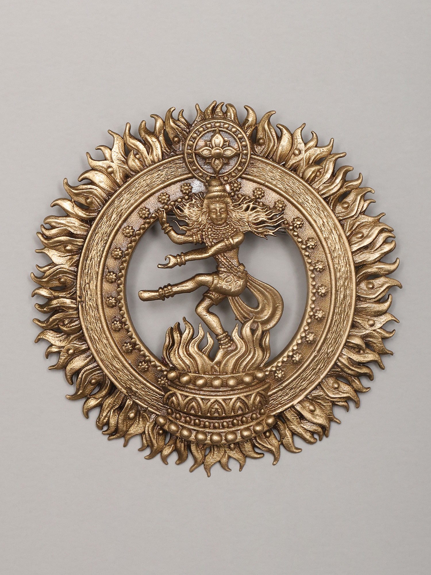 17" Wood Framed Designer Brass Urli | Wall Hanging