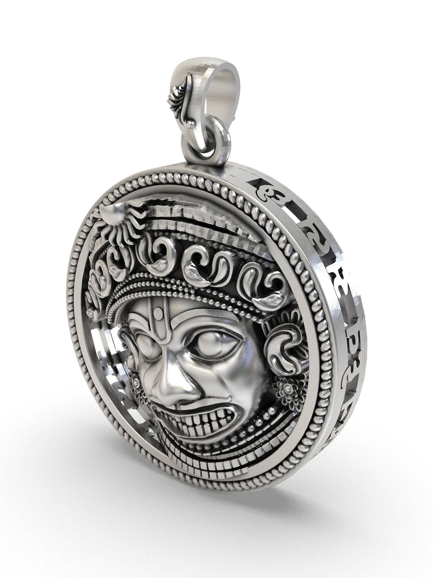 Lord Hanuman Sterling Silver Pendant with Siya Ram Mantra Halo