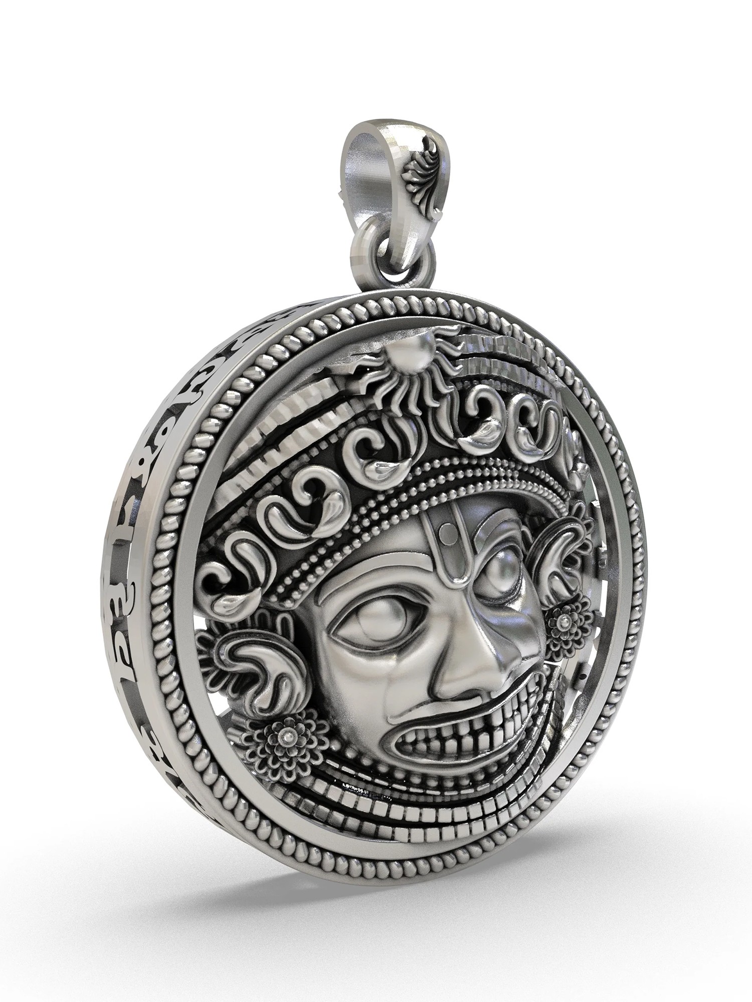 Round Shape Lord Hanuman Stelring Silver Pendant