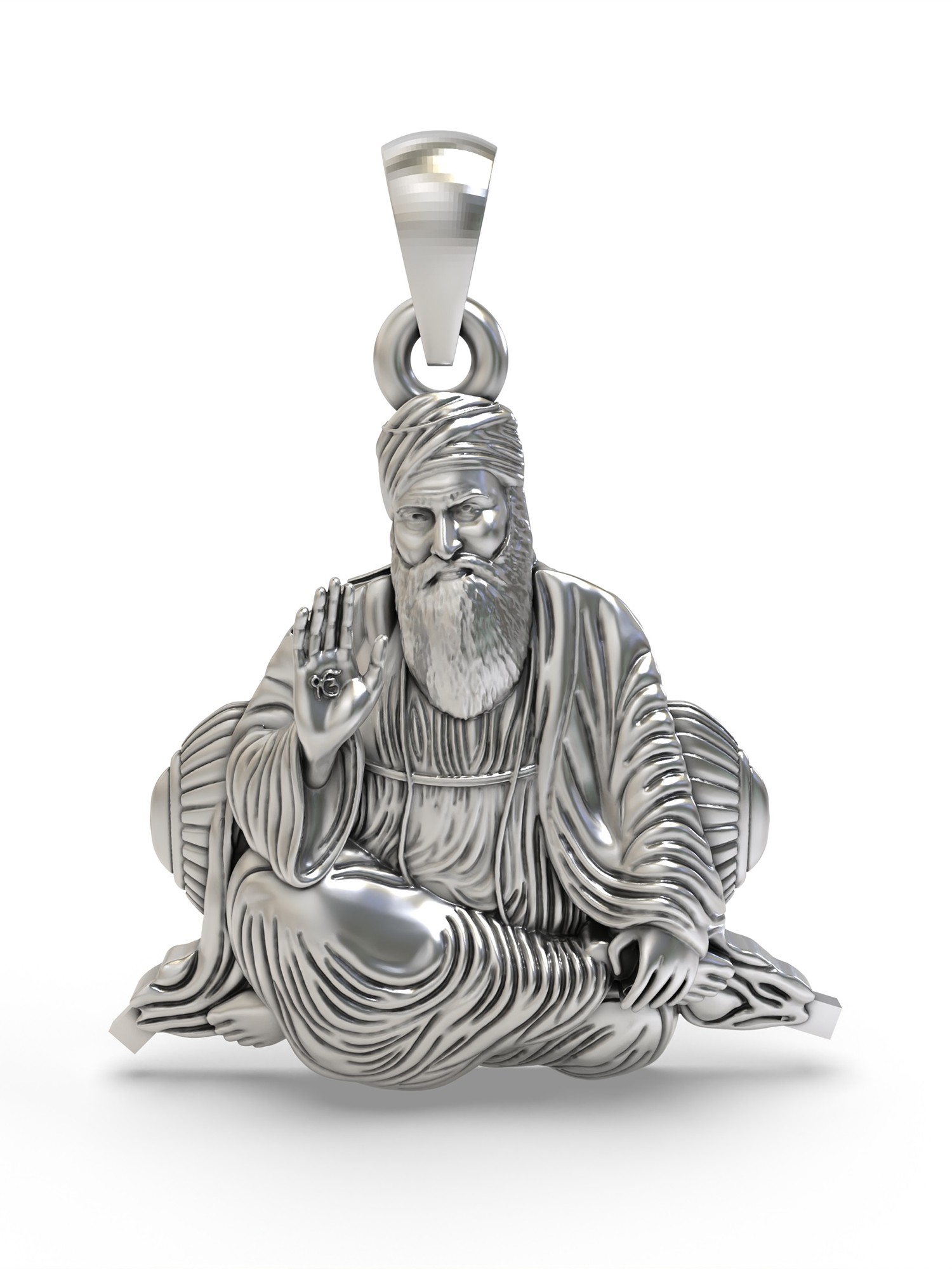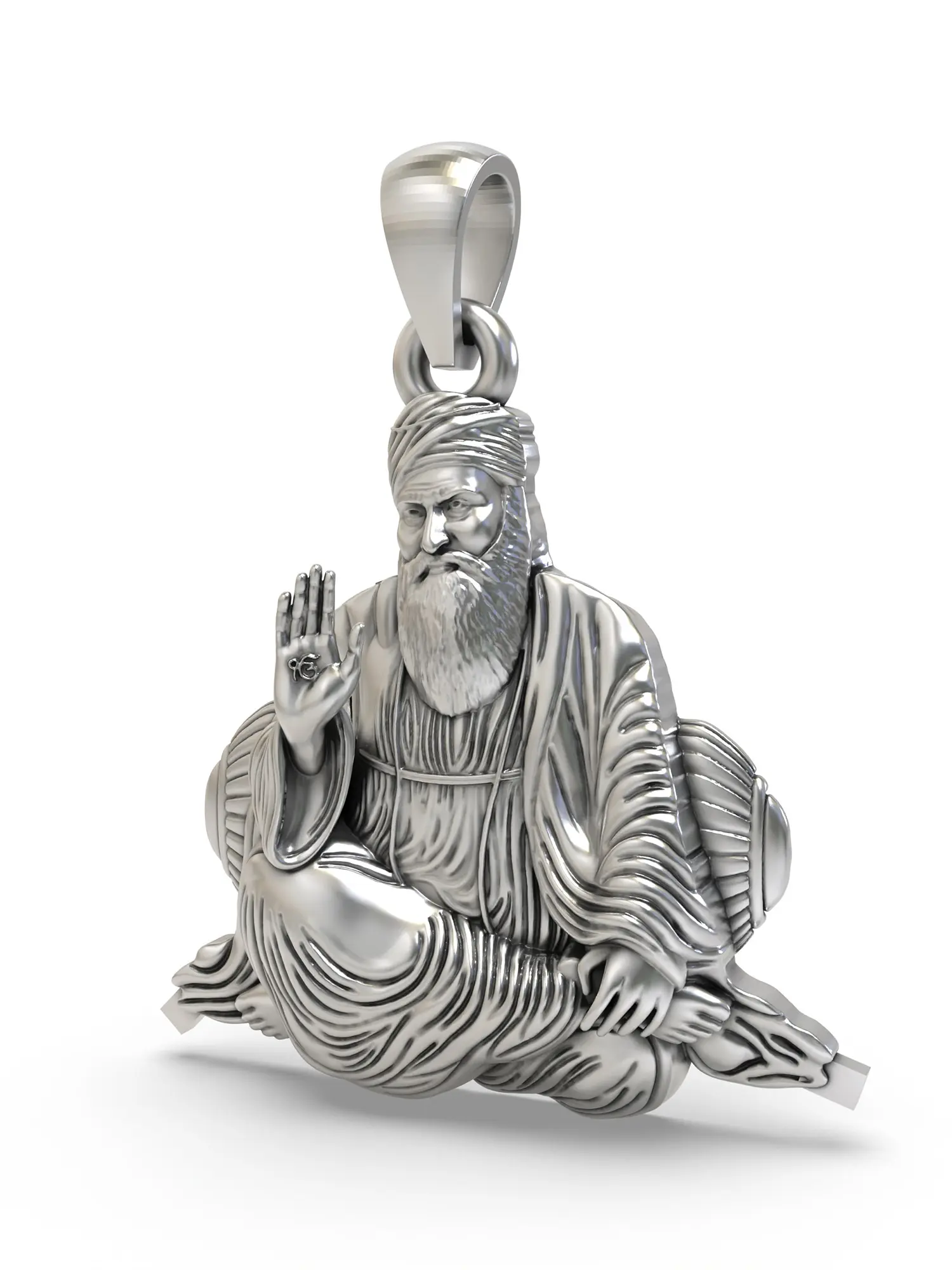 Round Shaped Hand-Painted Shri Guru Nanak Dev Ji Pendant