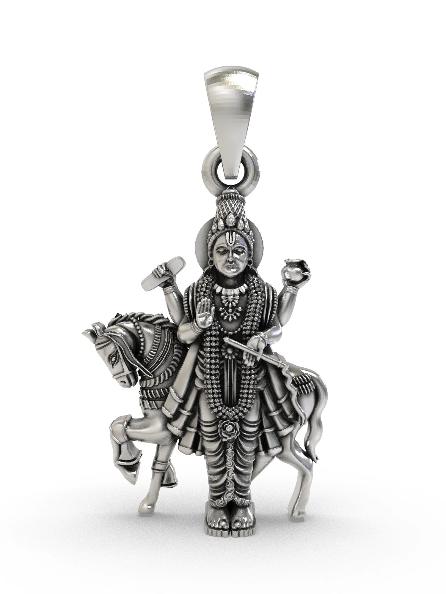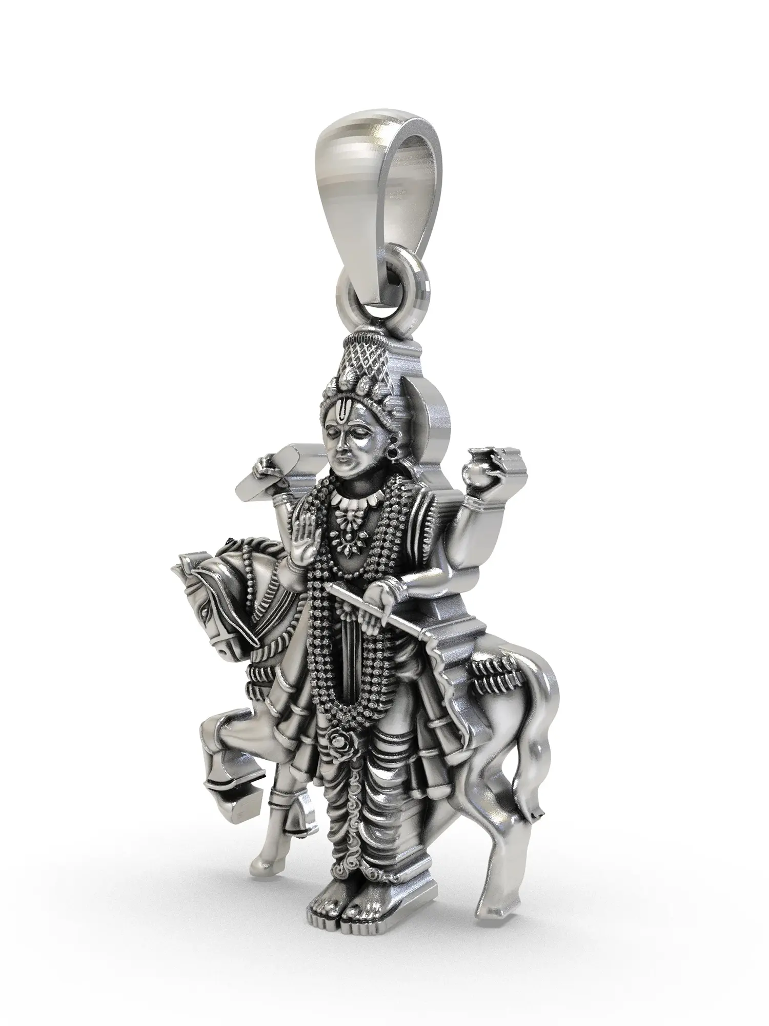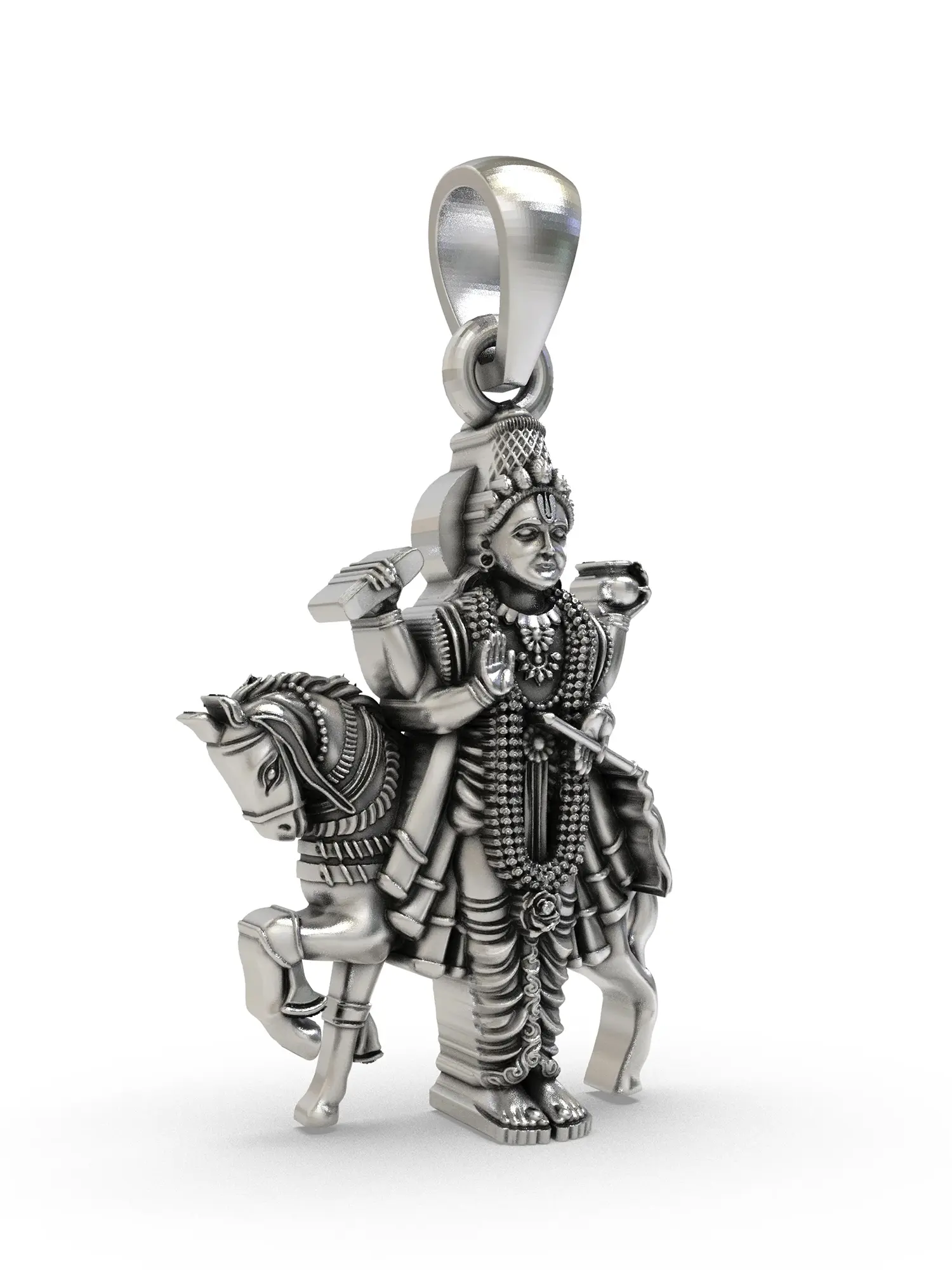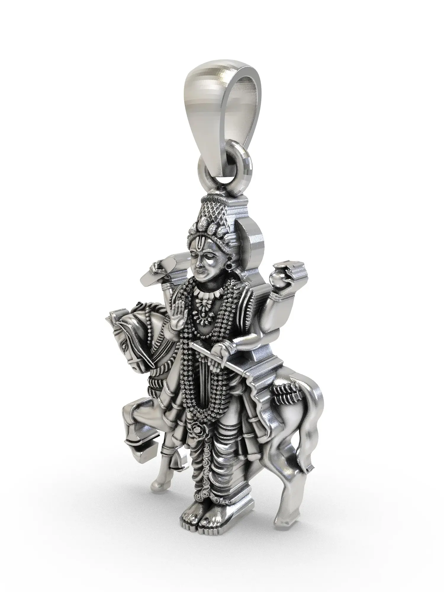 The commanding presence of this pendant is immediately apparent, measuring a distinguished 1.15 inches in height. Its substantial sterling silver construction provides a reassuring weight and a lustrous sheen that catches the light beautifully. Every curve, from the flowing mane of the steed to the serene expression of the deity, is rendered with breathtaking precision, inviting closer contemplation.