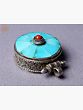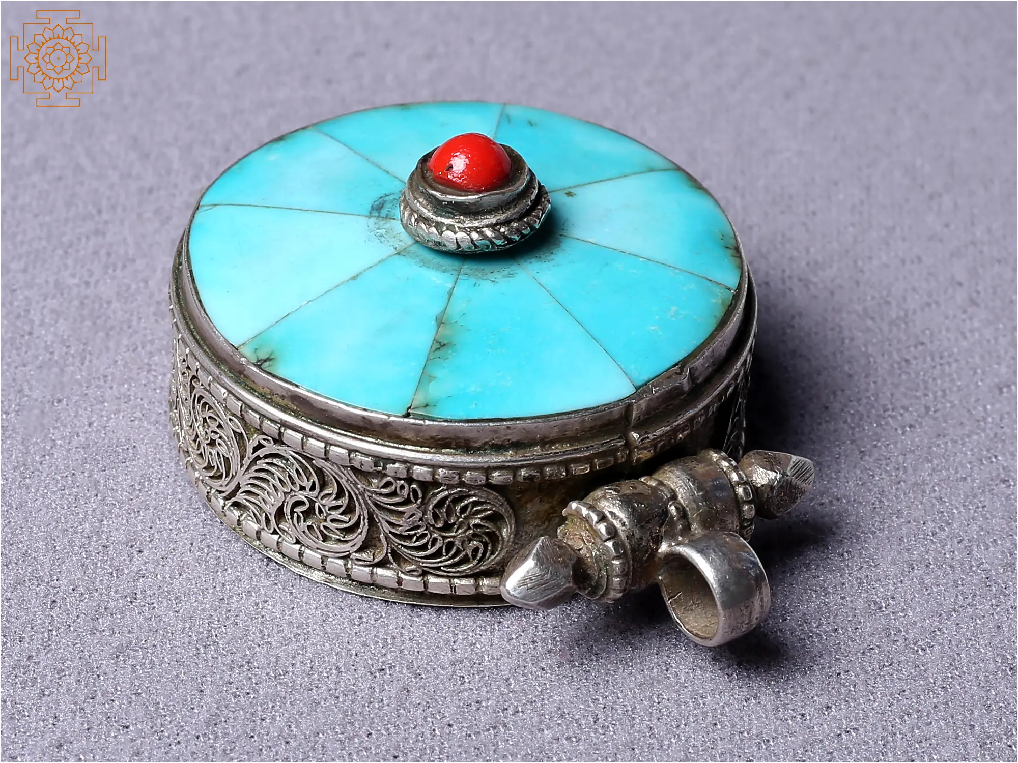 You will not find an accessory with better use of minimalism and the glory of the turquoise stone. This Silver Blue Ghau pendant is the epitome of traditional charm. They design the pendant in a chakra form with a red stone at the center. The turquoise stones are arranged in the form of the blades of a chakra. The middle portion is ornamented with wired vines. It has a casket very typical of Ghau pendants. The scared scrolls were placed inside these caskets to energize the pendant. This piece of jewelry is one of a kind elegant piece that can attract attention and transform it into positive energy to benefit the bearer.