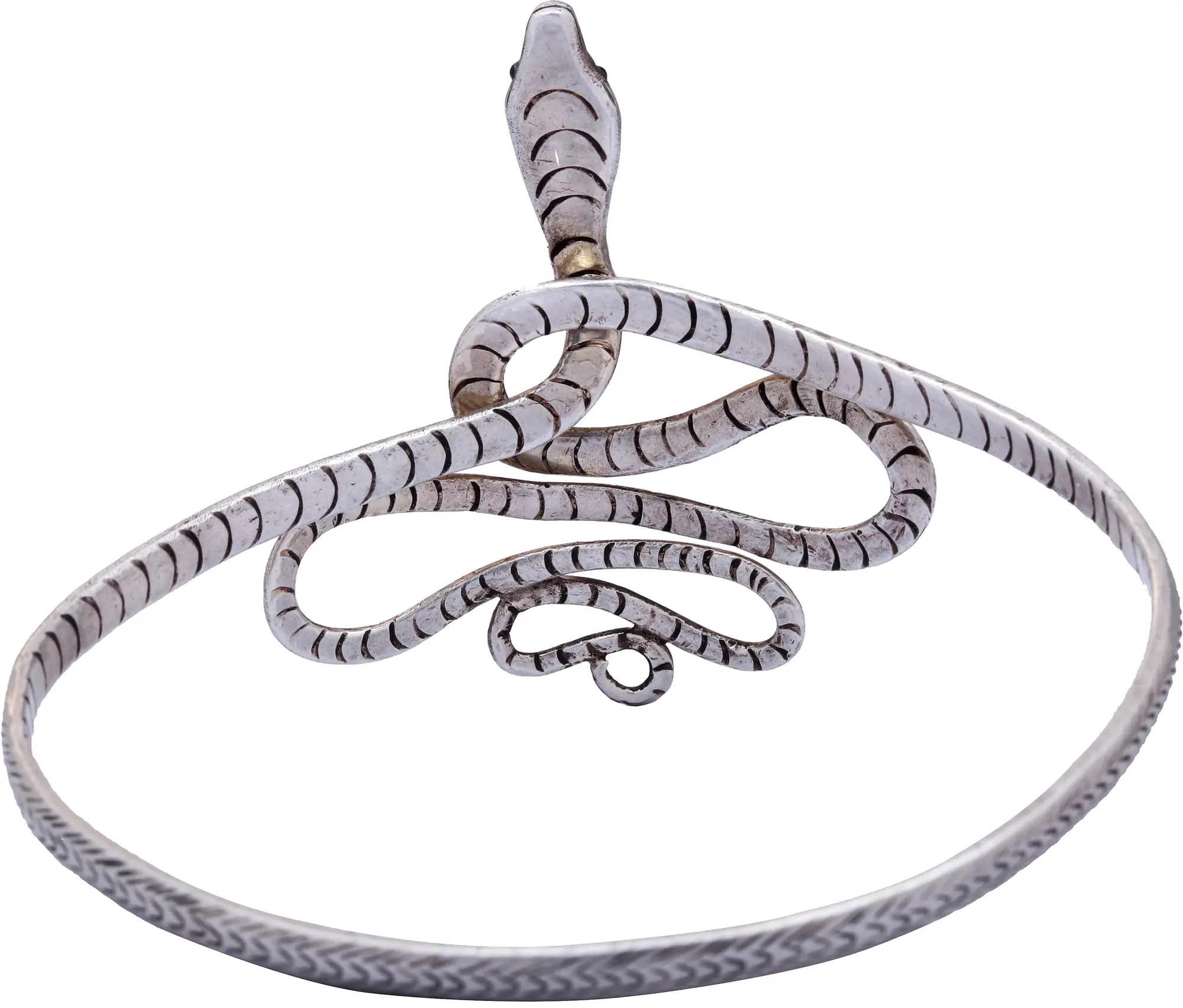 Intricately detailed sterling silver armlet designed in the form of a coiled serpent.