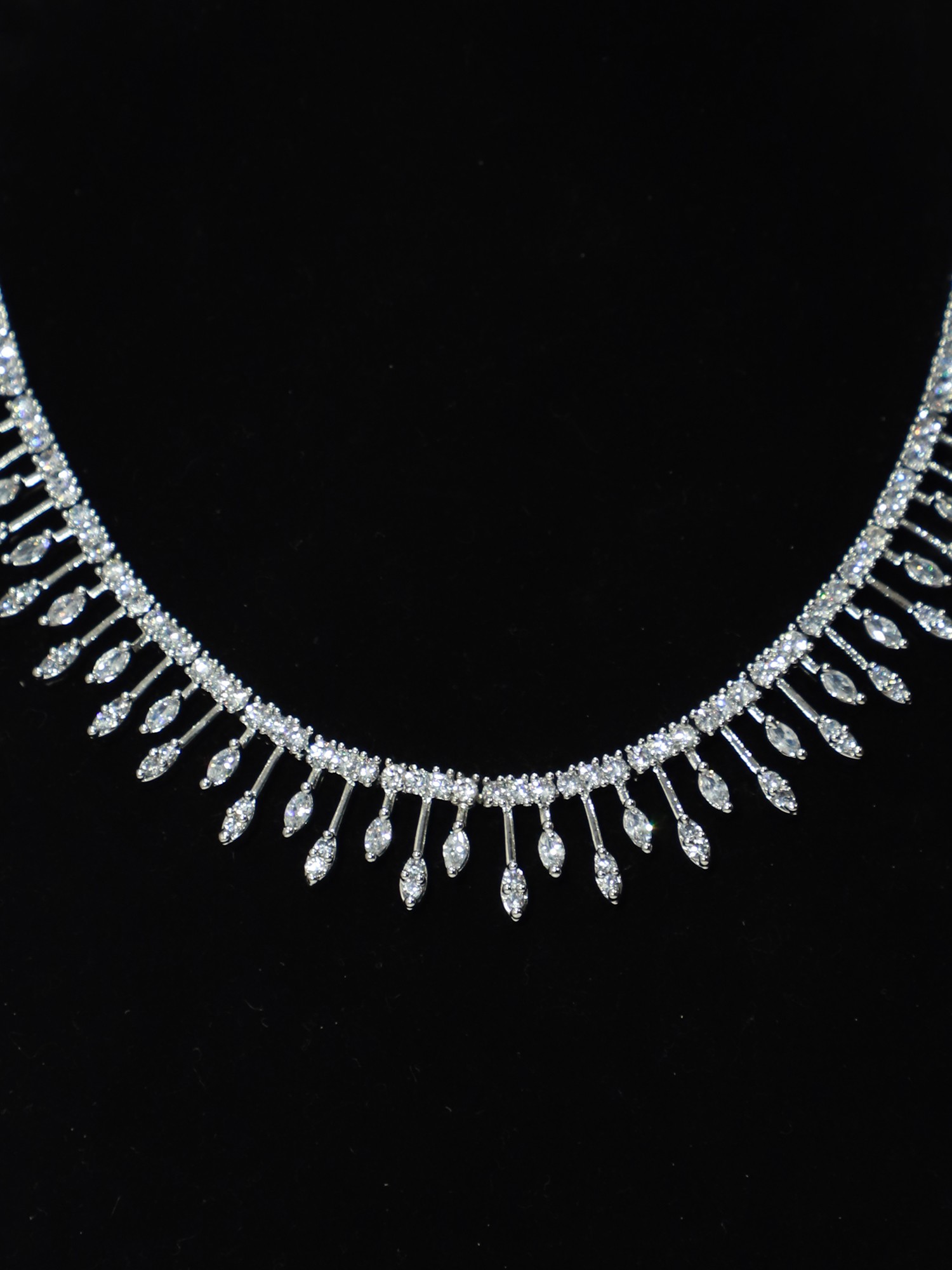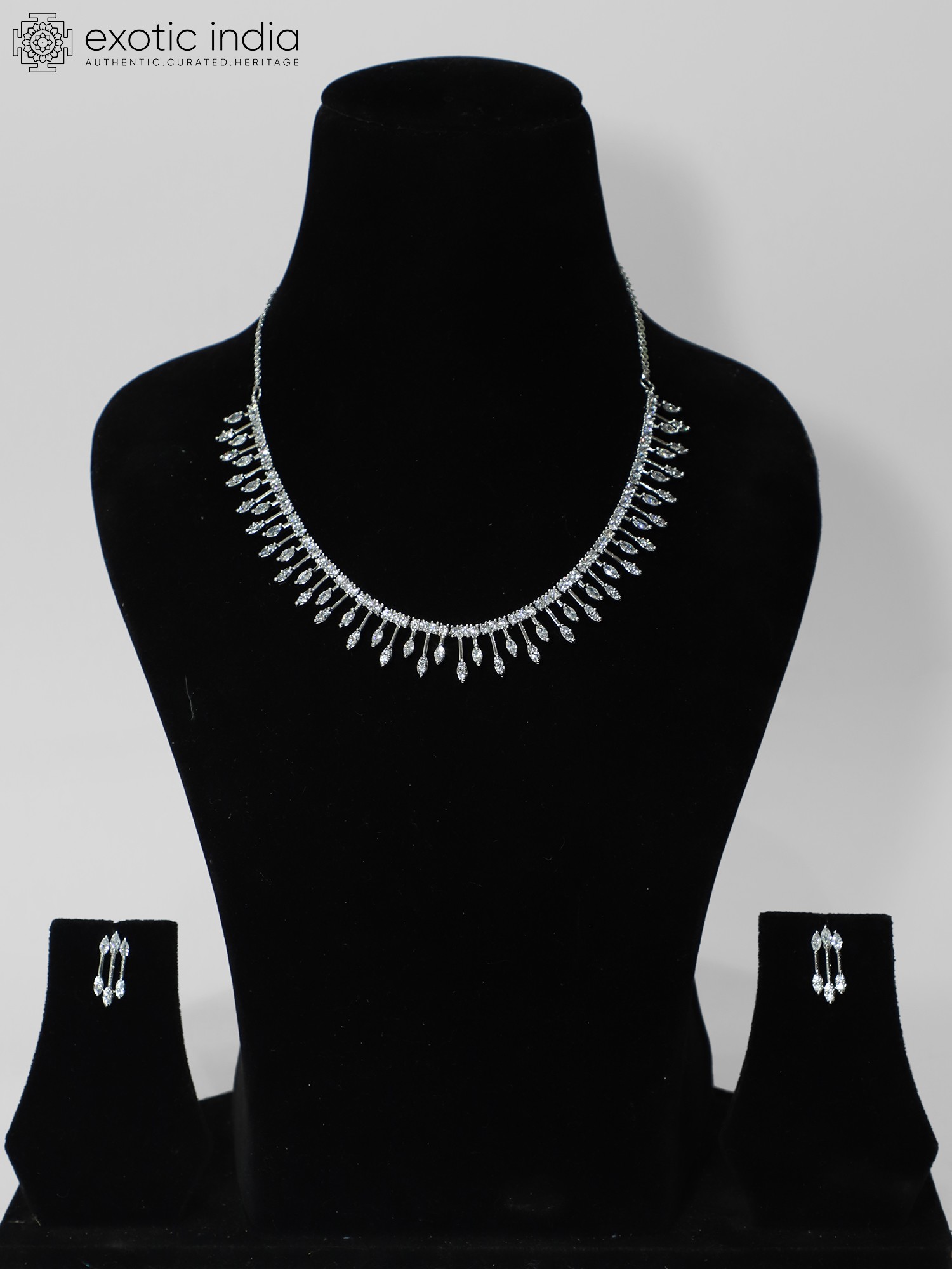 Beautiful Floral Design Stunning And Stone Studded American Diamond Necklace Set With Earrings