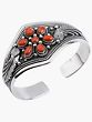 The beauty of the coral is further enhanced by the surrounding sterling silver, which has been expertly sculpted to create a rich tapestry of texture and detail. The edges of the bracelet are adorned with a classic twisted rope design, lending a sense of timeless elegance and providing a subtle, tactile contrast. This rope motif is echoed throughout the piece, creating a cohesive and visually engaging aesthetic. Interspersed between the coral cabochons and the rope detailing, you'll discover delicate silver beadwork and swirling spiral motifs, reminiscent of ancient cultural symbols. These intricate elements showcase the artisan's dedication to every facet of the design, transforming a simple bracelet into a wearable work of art. ––––––––––