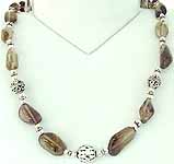 Complementing the warm tones of the smoky quartz is the cool, lustrous sheen of sterling silver. The sterling silver components, including delicate spacer beads and intricately designed accent pieces, add a touch of refined elegance to the overall design. The silver beautifully highlights the natural beauty of the smoky quartz, creating a balanced and harmonious aesthetic. The use of sterling silver ensures durability and lasting beauty, allowing you to enjoy this necklace for years to come. The secure clasp ensures a comfortable and worry-free wear, so you can confidently showcase your style wherever you go.