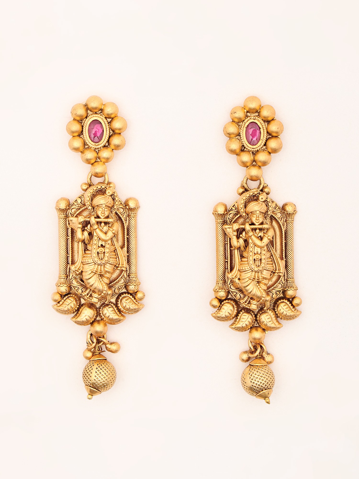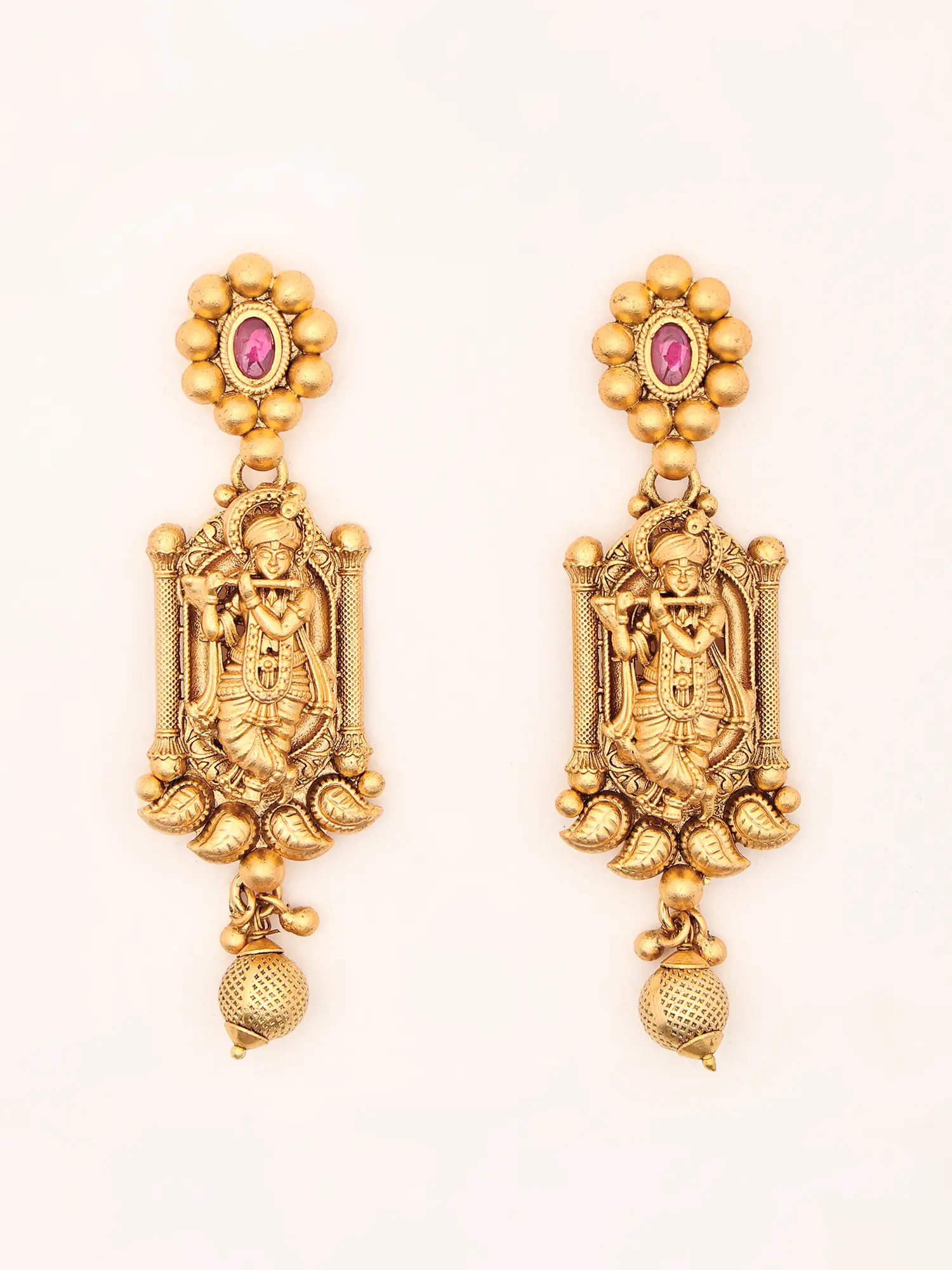 Fluting Radha Krishna Long Necklace and Earring Set with Beads