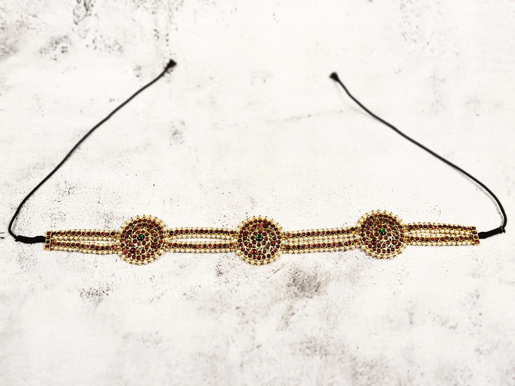 Step into the cultural richness of South India with a traditional Kamarband. This waist ornament, deeply rooted in South Indian heritage, is a captivating blend of craftsmanship and tradition. Crafted with intricate detailing, the Kamarband drapes gracefully around the waist, accentuating feminine allure. Adorned with traditional motifs and often embellished with gemstones, it's a testament to the region's artistry. Whether worn during festive occasions or as a statement piece, the South Indian Traditional Kamarband is a celebration of culture, a symbol of timeless beauty, and a nod to the region's sartorial splendor.