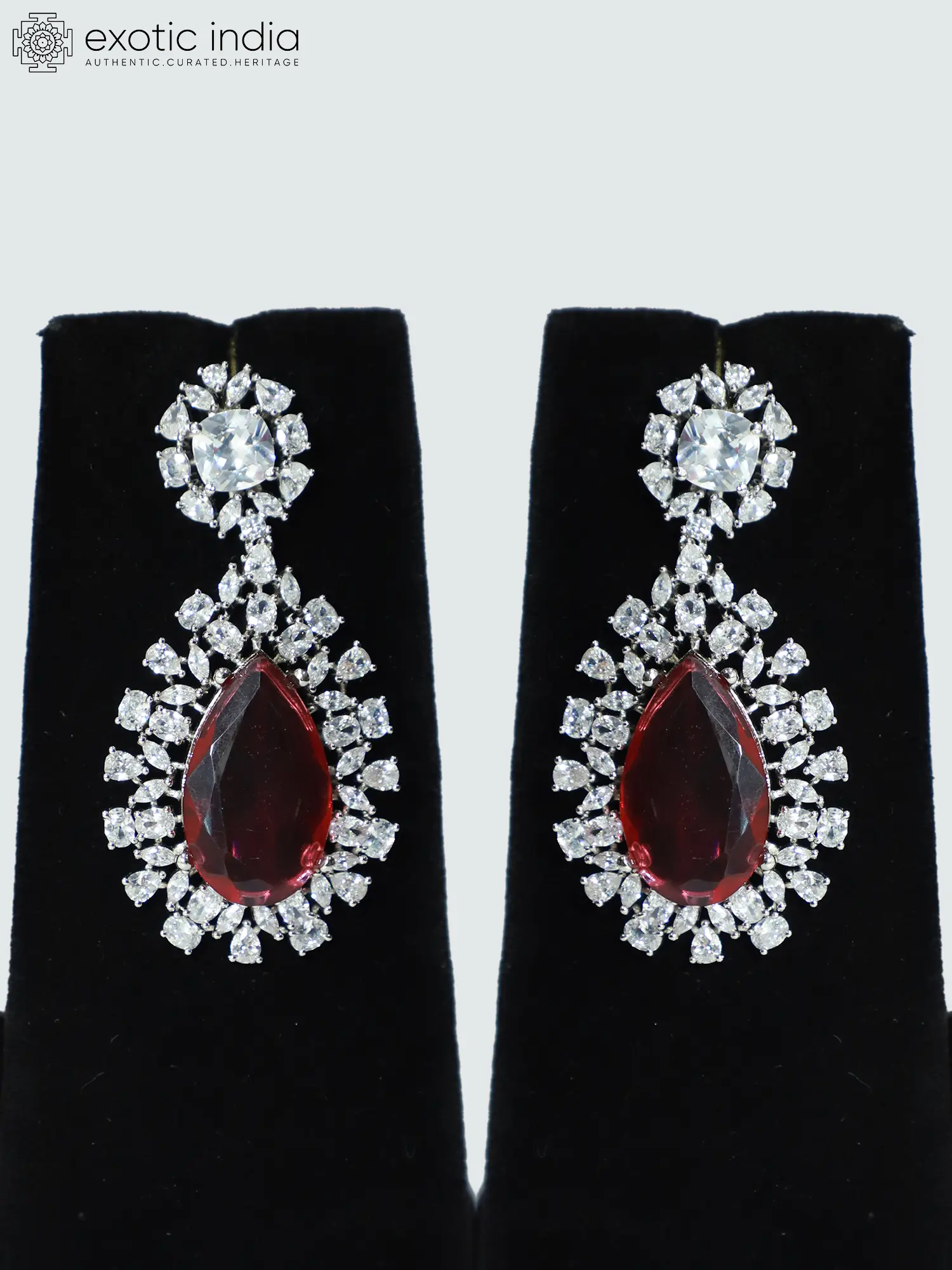 The addition of ruby stones serves as a masterful touch, introducing a pop of rich color that beautifully complements the sparkling brilliance of the American diamonds. These ruby stones are carefully integrated into the floral motif, providing a subtle yet striking contrast against the clear stones. The deep red hues of the rubies add a touch of warmth and vibrancy, enriching the overall design. This blend of colors and textures provides a truly unforgettable visual experience. The strategically placed rubies are not overpowering, instead acting as accent pieces to enhance the existing design's splendor.