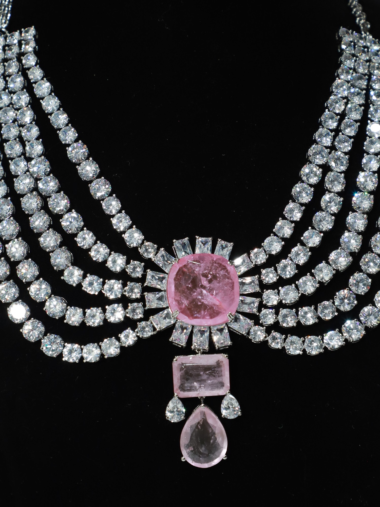 Embellished American Diamond Necklace & Earring Set With Round Sparkling Stones