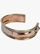 Measuring 0.6 inches in height, this cuff bracelet features a bold, central inscription in a contrasting metal. The smooth, polished edges ensure comfortable wear, while the warm tones of the copper alloy are beautifully complemented by the metallic lettering and braided trim. Its adjustable nature ensures a perfect, personalized fit for any wearer.