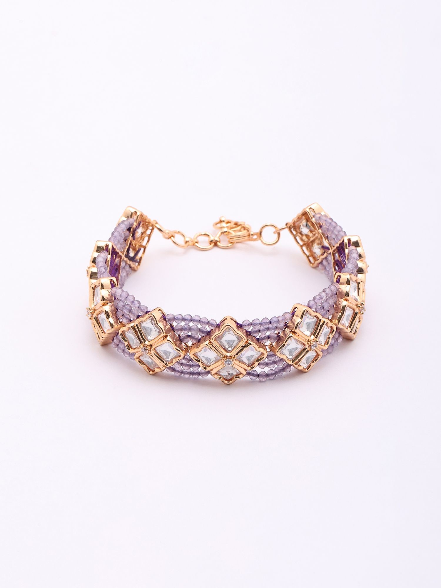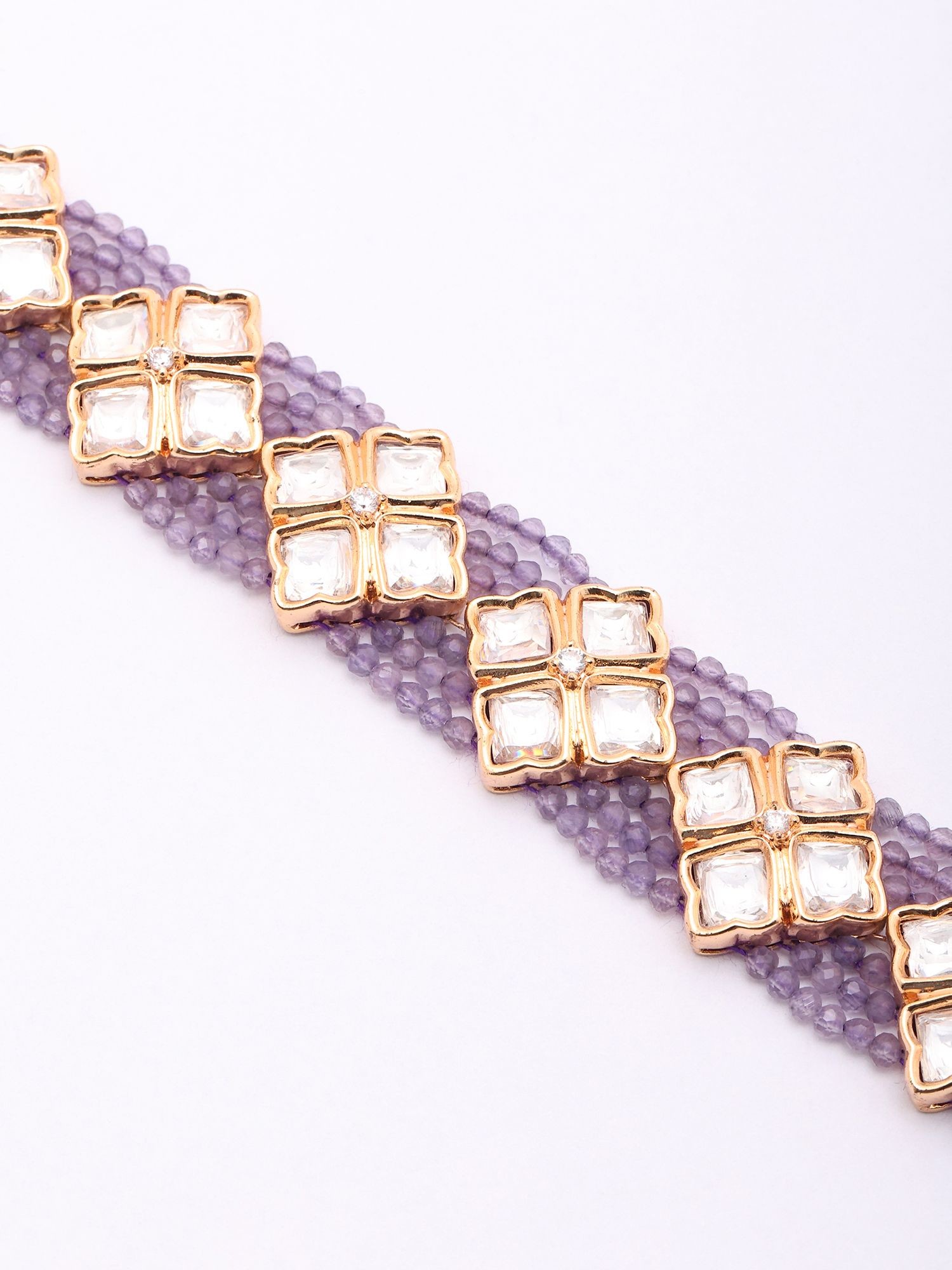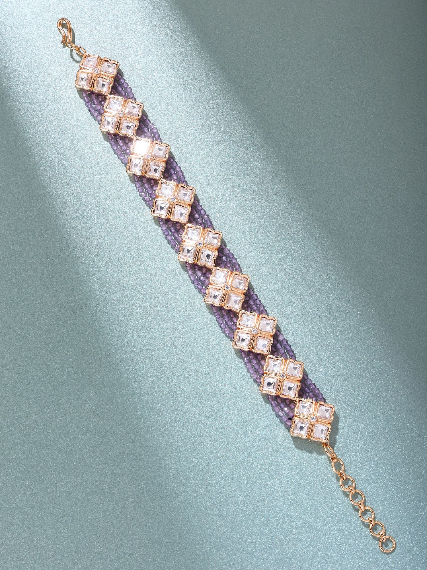 Square Design Kundan Stone Bracelet with Amethyst Beads (Adjustable)