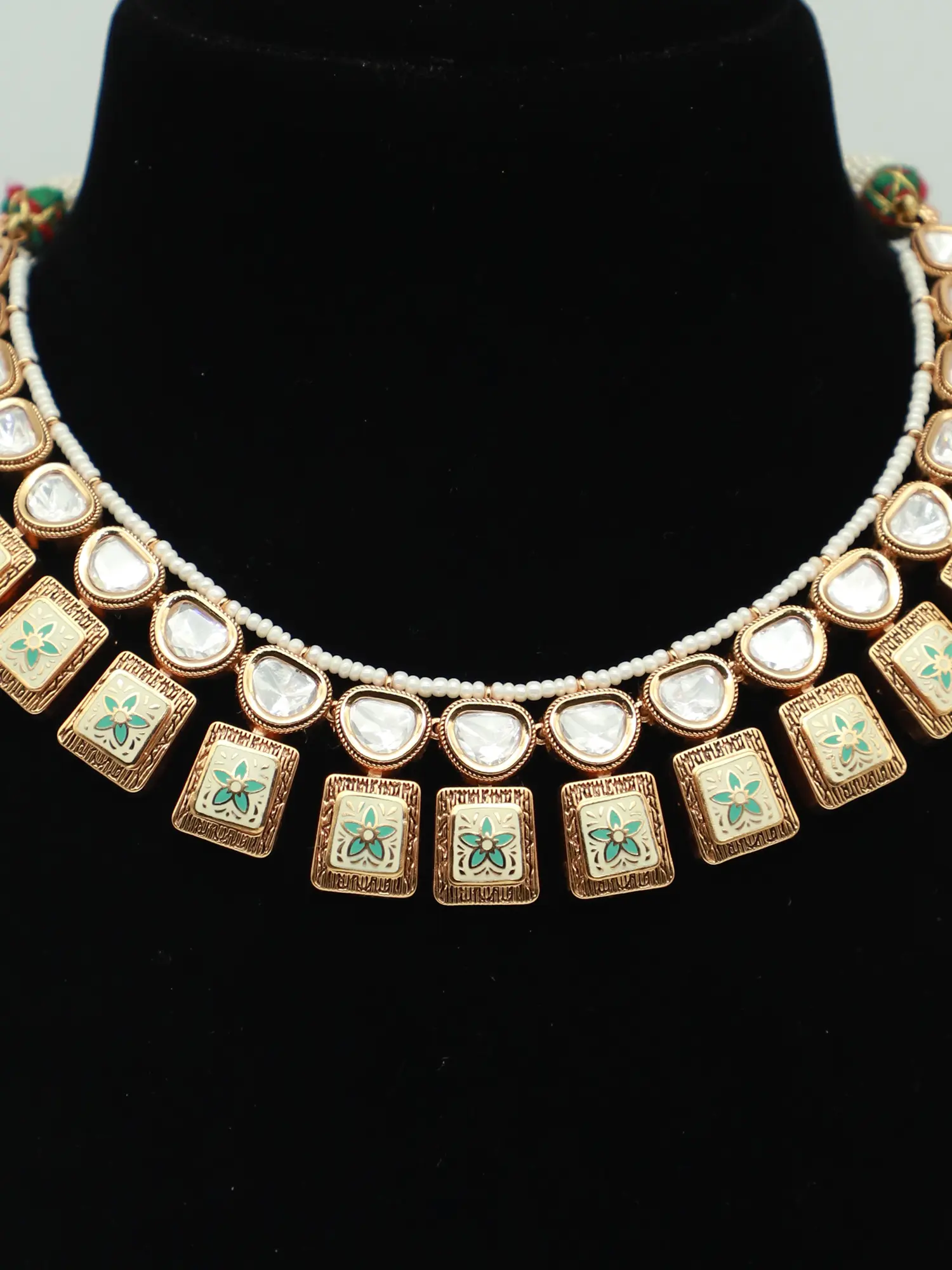 White And Multicolor MOP Round Shaped Jewelry Set With Earrings