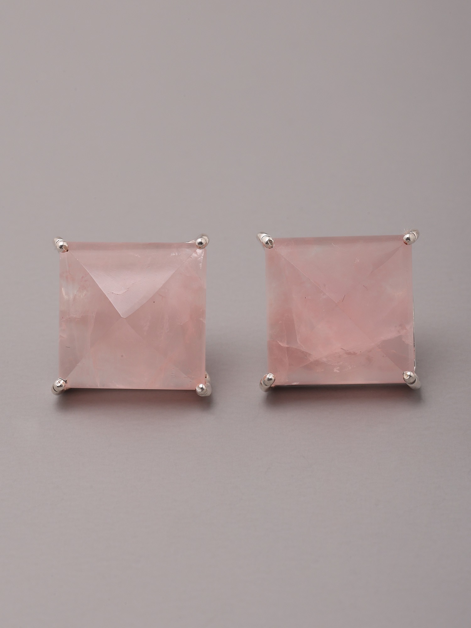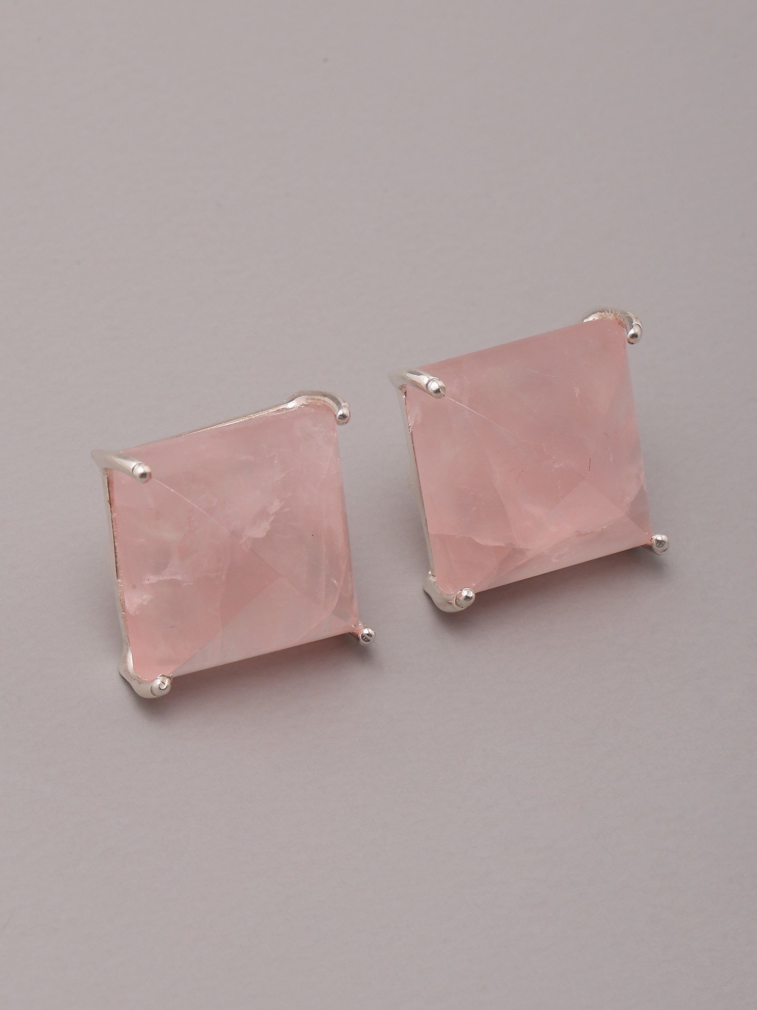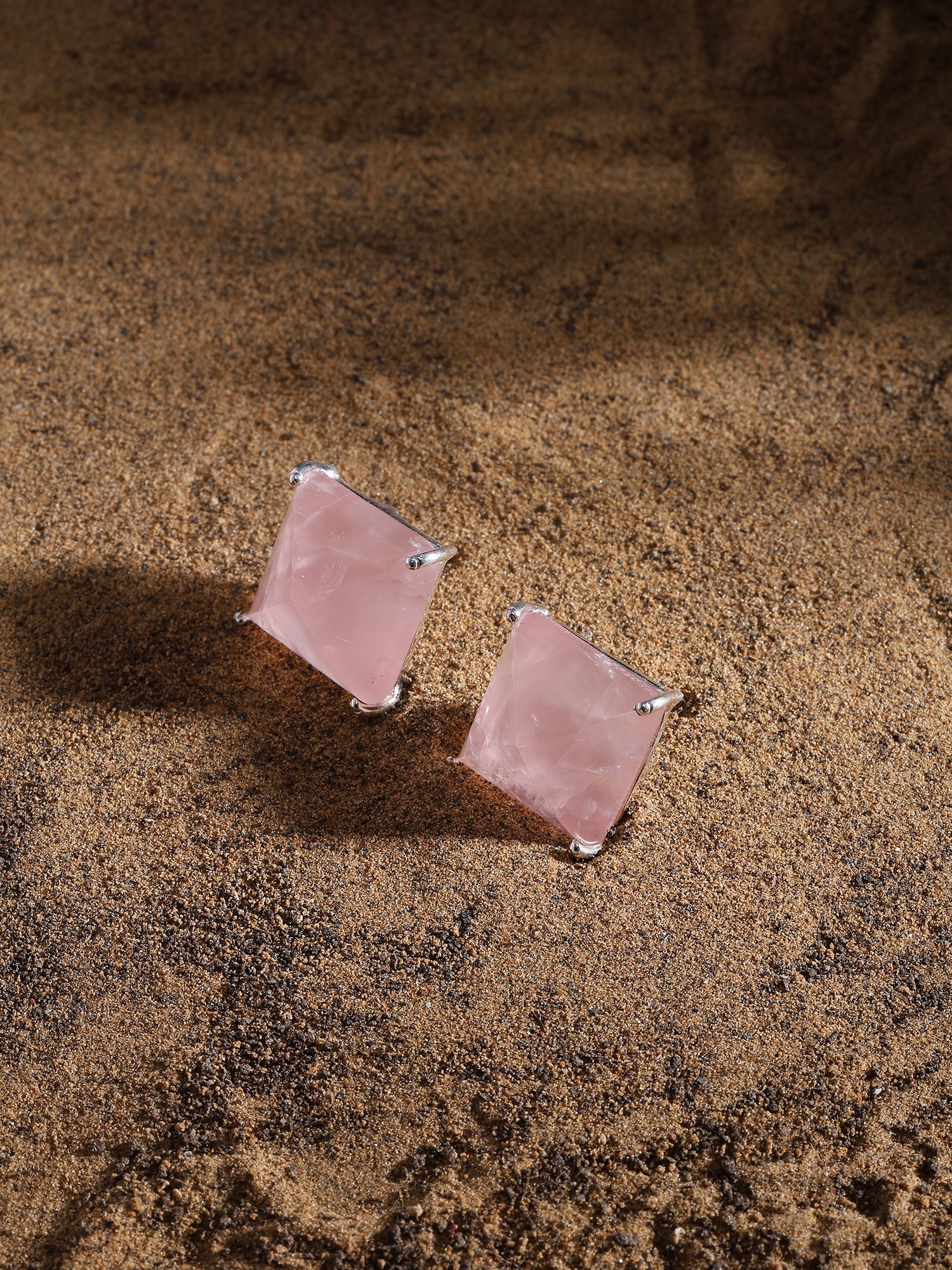Each earring features a meticulously faceted rose quartz, designed to catch and reflect light with every movement. The square shape is a contemporary twist on a classic design, giving these earrings a modern edge. The sterling silver setting provides a secure and stylish frame for the stone, adding to the overall quality and durability. The attention to detail is evident in every aspect of these earrings, from the carefully chosen materials to the impeccable finish. They are not just accessories; they are wearable works of art.