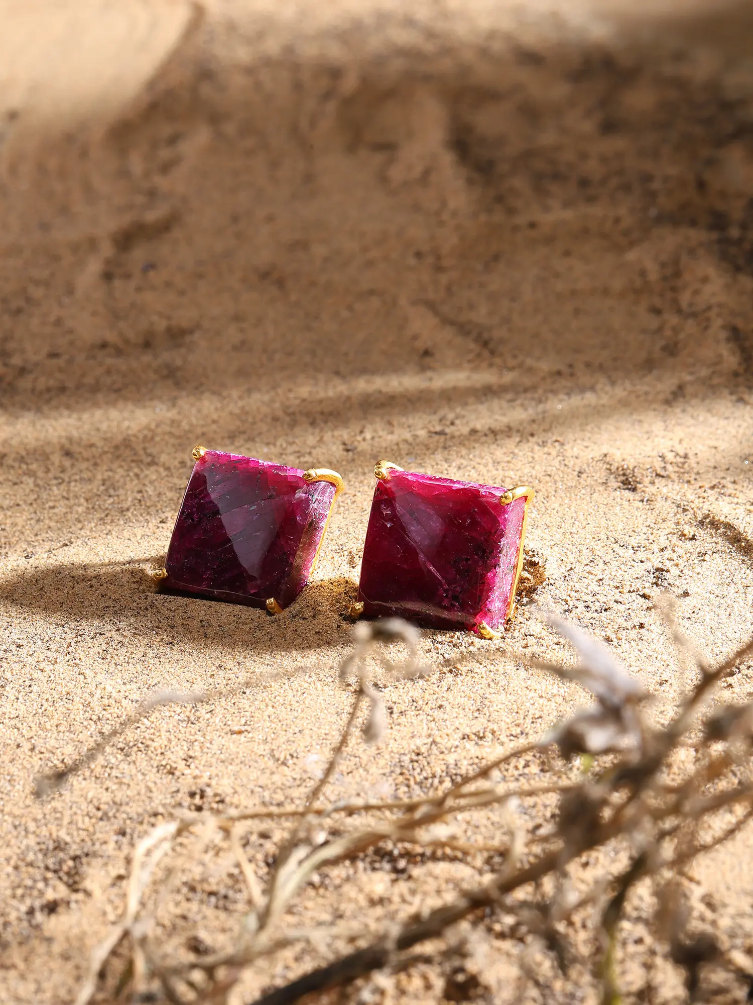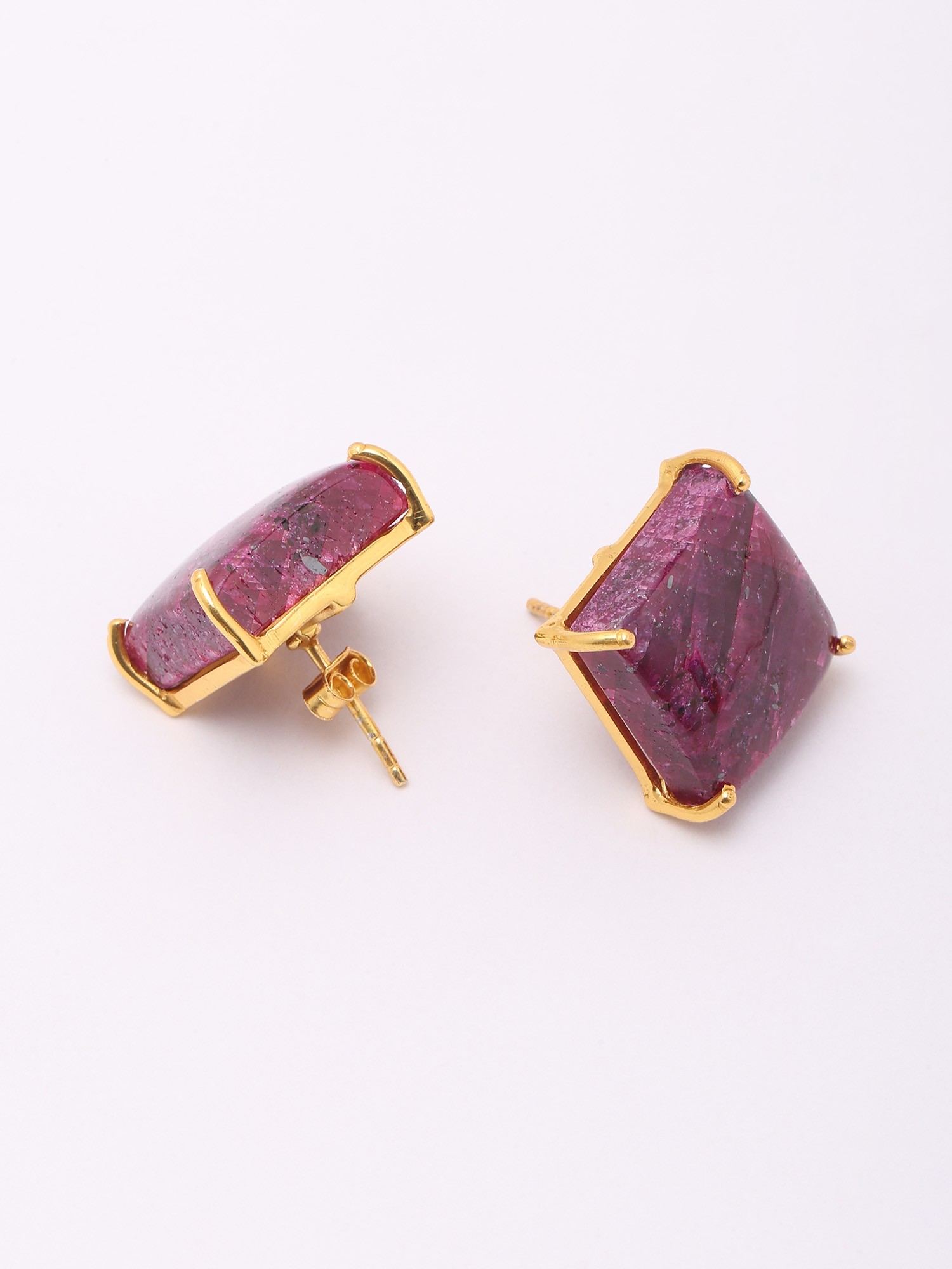 Triangular Shaped Pink Fuchsia Chalcedony Stud Earrings