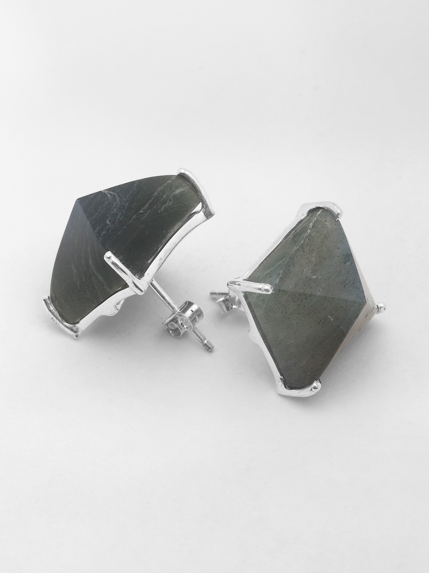 Triangular Shaped Pink Fuchsia Chalcedony Stud Earrings