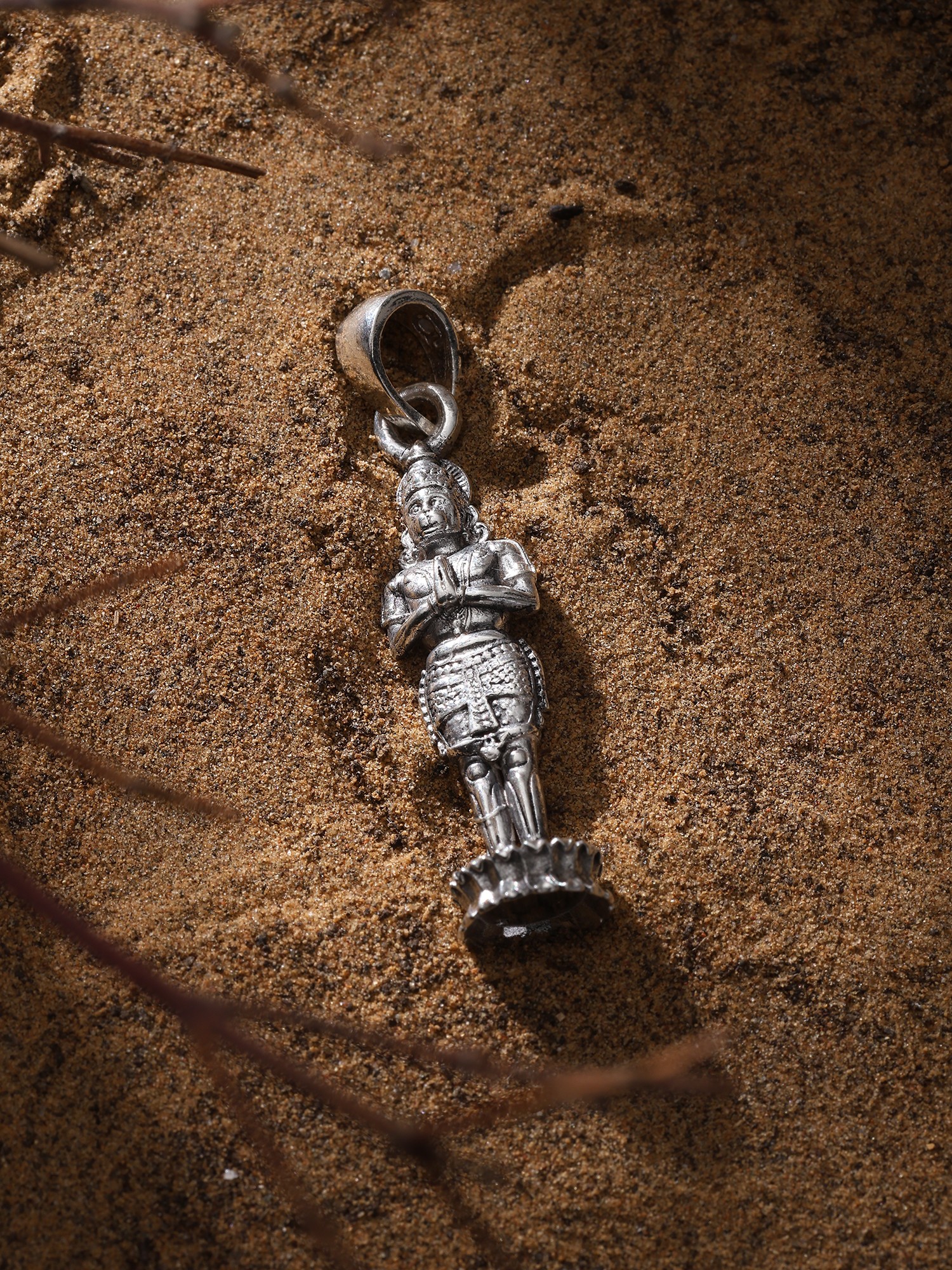 Stone Studded Lord Hanuman Face Sterling Silver Pendant