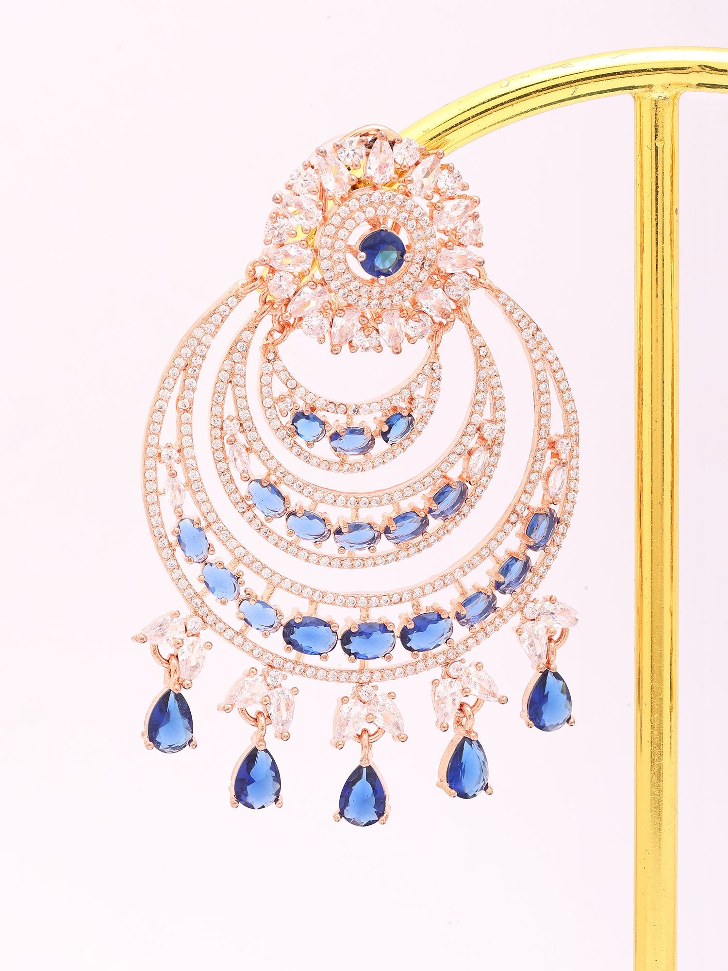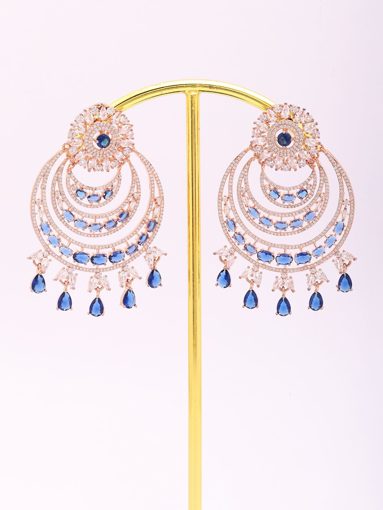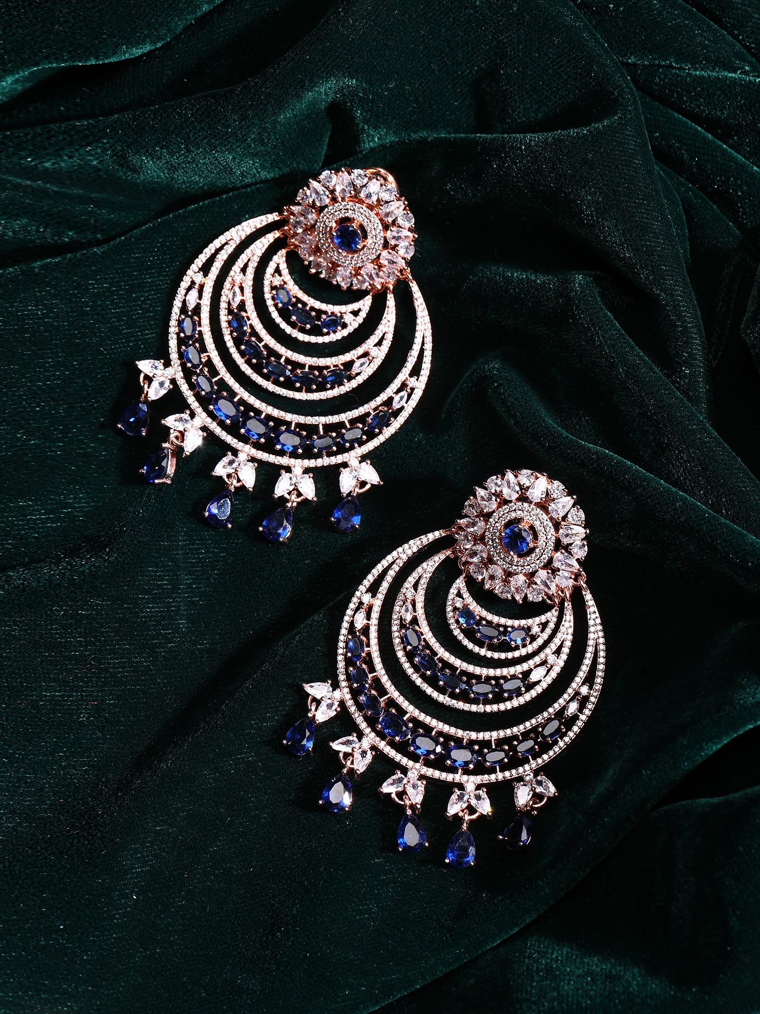 Embellished with elegant sapphire-colored drop accents.